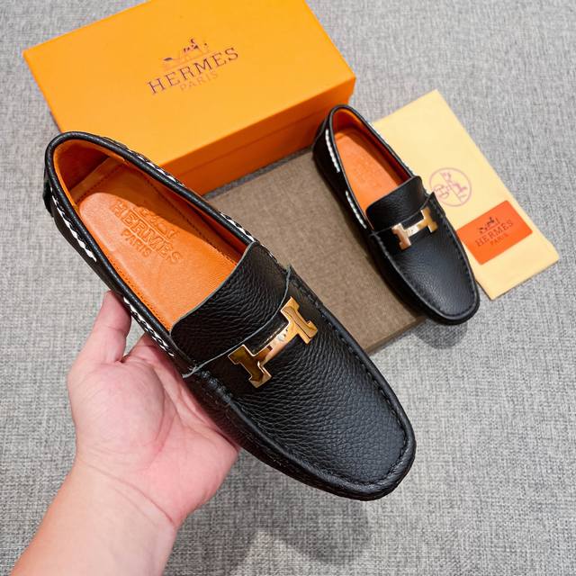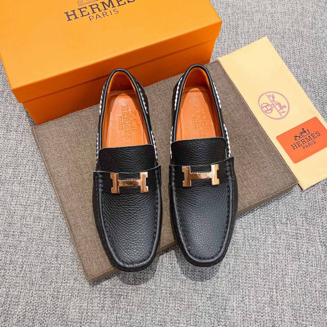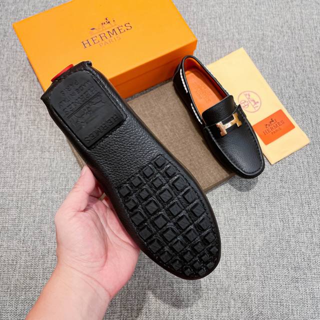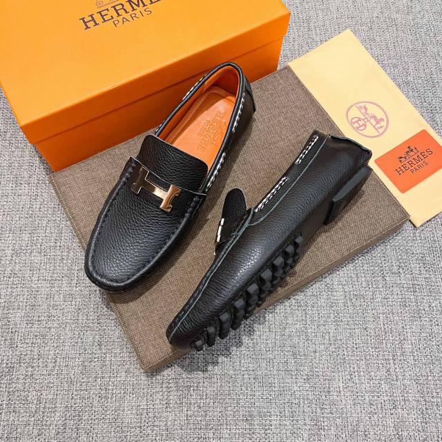 / 实价, 全纯牛里 高端豆豆鞋,爱马仕 HermèS 官方新款,意大利名模贵族们爆款,HermèS时尚界的佼佼者,无可超越,适合驾车,休闲,白领,商务男士首选,明