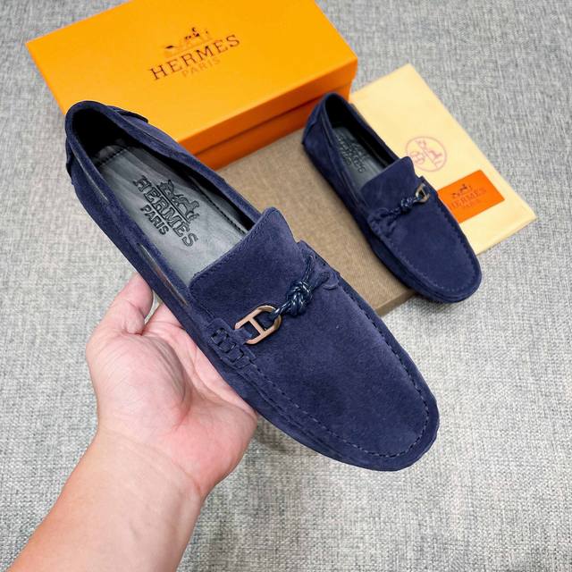 / 实价, 全纯牛里 高端豆豆鞋,爱马仕 HermèS 官方新款,意大利名模贵族们爆款,HermèS时尚界的佼佼者,无可超越,适合驾车,休闲,白领,商务男士首选,明