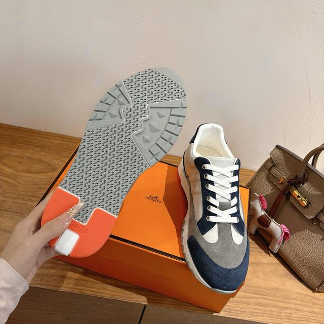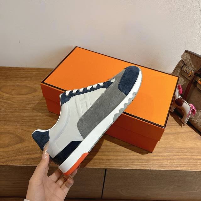实价: Hermes Fw25 Ne Arrival~ Ddd 秋冬新款Trail运动鞋 Ddd Trail运动鞋款式,设计经典百搭,一脚蹬的样式方便穿脱,适合多种场合穿搭。品牌标识:爱马仕标志性的设计元素,彰显品牌身份。 Ddd 采用牛皮材质,质感细腻,触感柔软,兼具舒适与高级感。提供丰富的色彩选择,包括深棕、黑色、米白、浅棕等,满足不同风格和搭配需求。做工精细,缝线工整,细节处体现品牌的精湛工艺,保证了鞋子的品质和耐用性。 Ddd Size:35-45 DDD