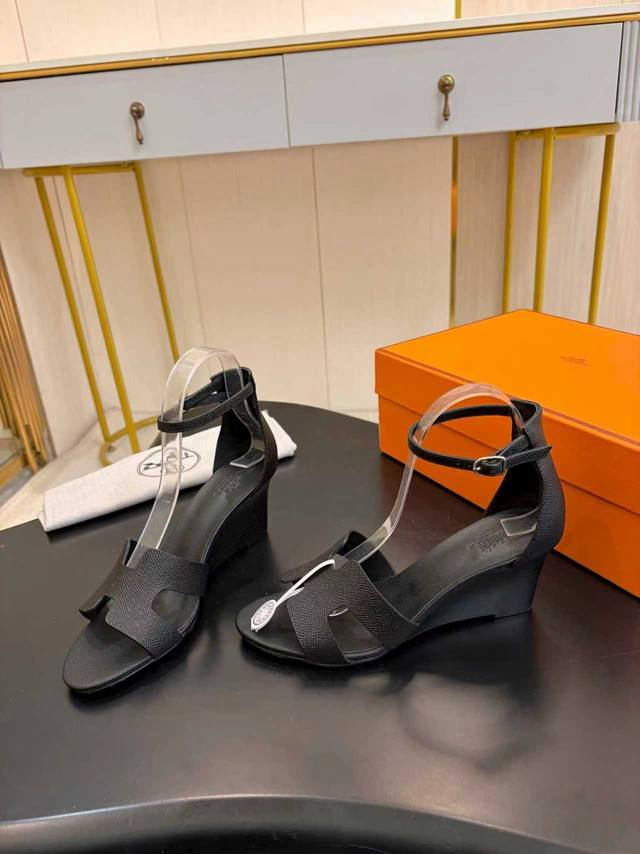 FFF 将经典延续 HermèS 坡跟凉鞋新配色 DDD 爱马仕的坡跟凉鞋是我见过最简约最耐看最有气质的!!!任何风格都能Hold住,7Cm高度轻松驾驭,每个颜色都有她的独特风格,一定要入手这款,真心经典好穿好看!面料:进口牛皮,内里羊皮,羊皮垫脚,意大利真皮大底 DDD Size:35-42 40.41 42定制不退不换 DDD