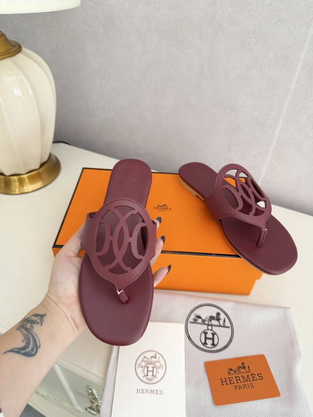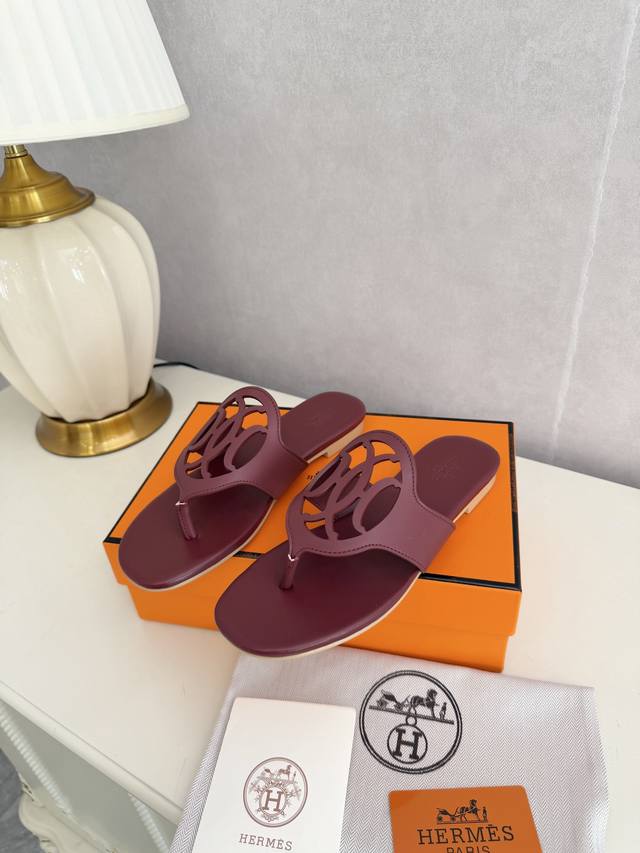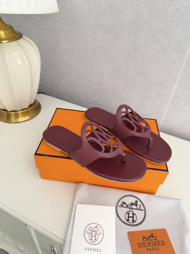 工厂p价 女装女鞋 运动原单早春爱马仕夹脚拖鞋 35-43。35不退换