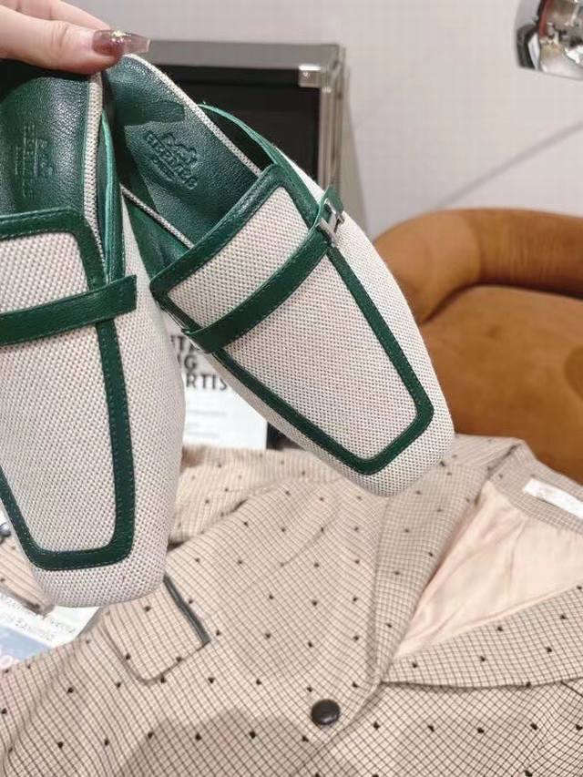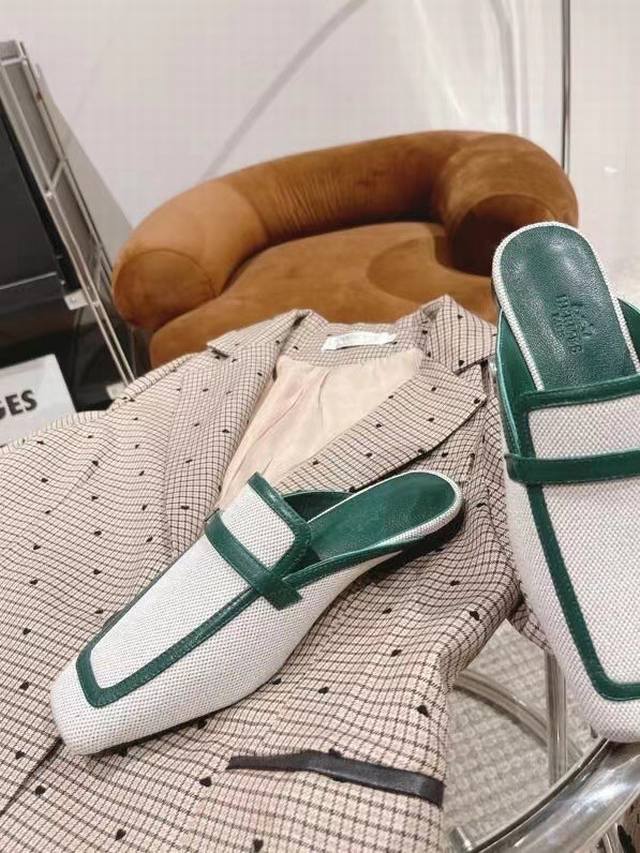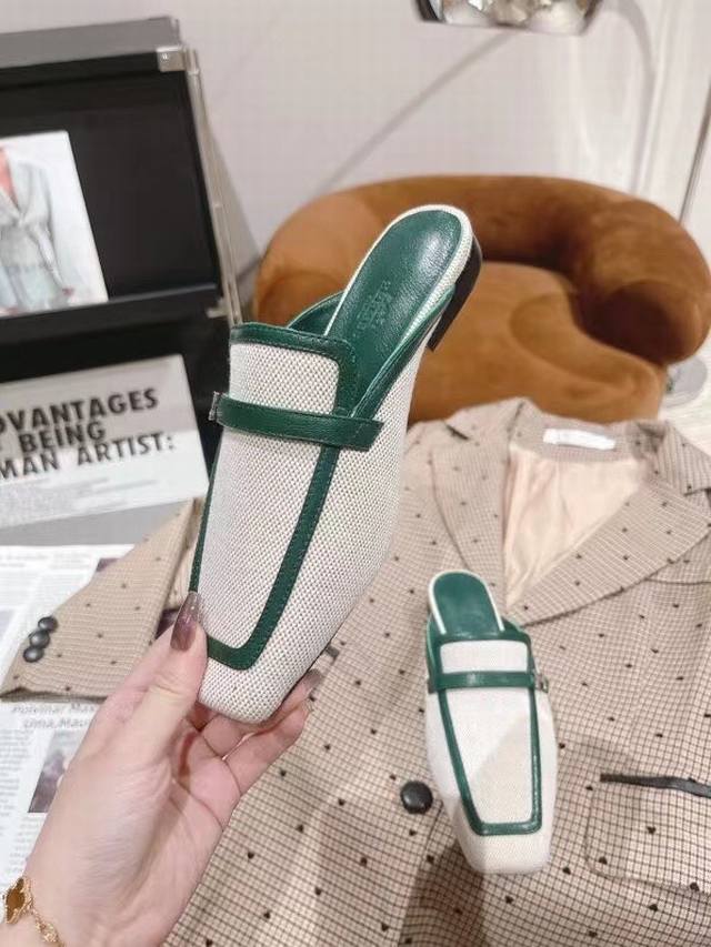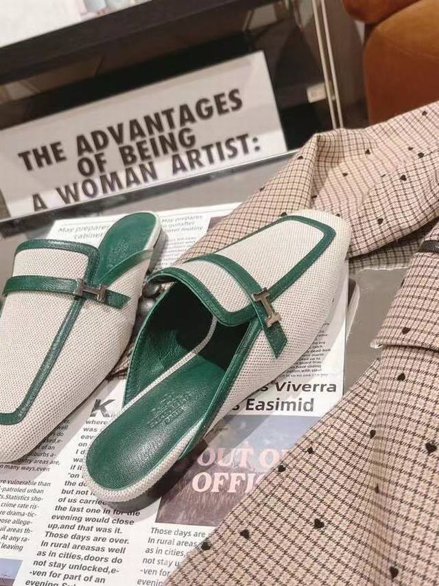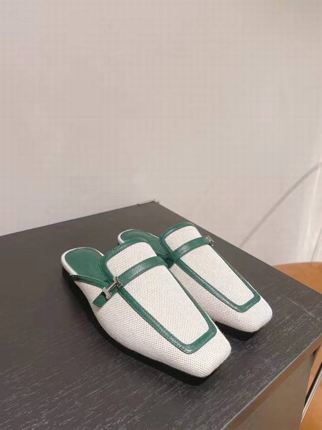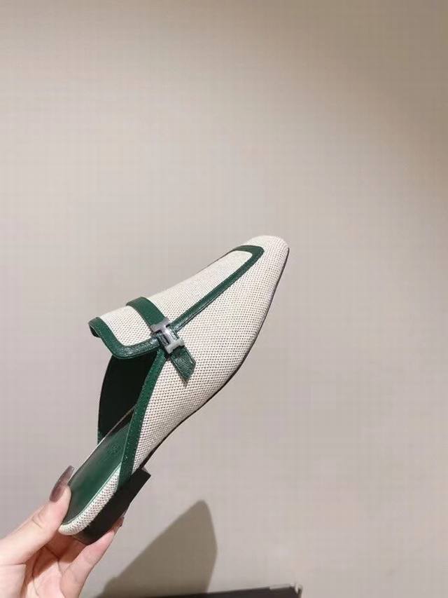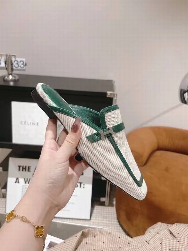 工厂p价 女装女鞋 运动原单。爱马仕Hermes 新款Groupie方头H扣穆勒鞋一脚蹬包头半拖鞋。时尚慵懒 好搭配 人手必备单品 DDD 面料:进口羊皮 高密度布料 DDD 真皮大底 DDD 码数:35 40 41可定做 DDD