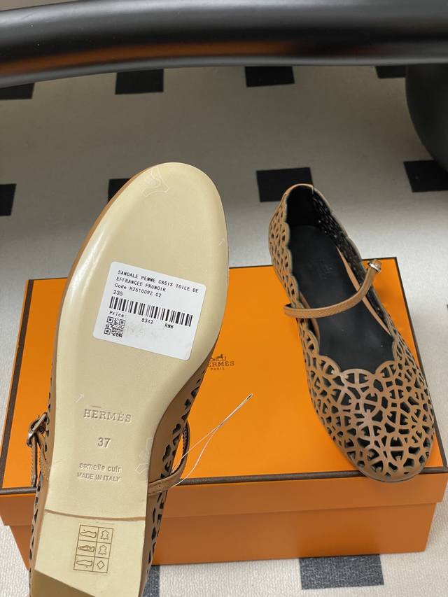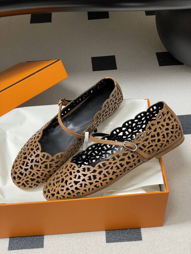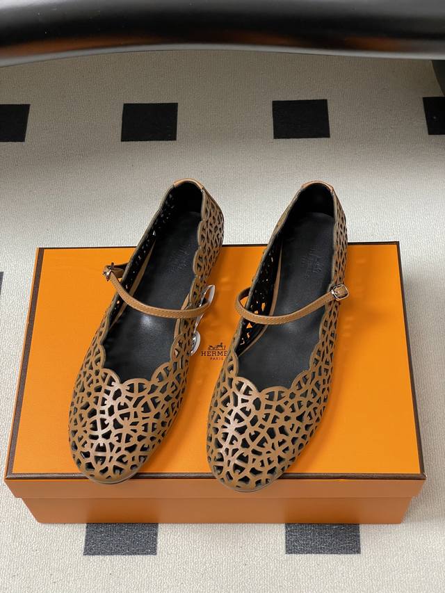 工厂p价 女装女鞋 运动原单 Ddd Hermes 爱马仕 H家26S春夏新款Meli芭蕾舞鞋镂空玛丽珍平底单鞋 Ddd 小牛皮芭蕾舞鞋,镂孔灵感源自 Chained'ancre 图案。打造时尚柔美造型。 Ddd 经典猪鼻子图案衔接,镂空让黑颜色不再显得沉闷,若隐若现的露肤度;延续今年的编织工艺+挖空鞋面设计,平底鞋更适合搭配裙装了 Ddd 鞋面:牛皮 Ddd 内里垫脚:羊皮 Ddd 鞋底:意大利A级真皮大底 Ddd 码数:35-39 40.41定做不退换 DDD DDD