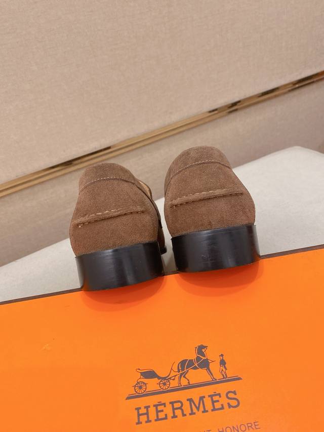 工厂p价 Hermes 爱马仕 顶尖工艺-时尚商务休闲款!纯正高品质可1:1比较!面料:原版全粒面牛皮 内里:牛皮内里!质感、舒适度又提升一级别!橡胶防滑底!码数: 39-44。可定做38.45。 DDD