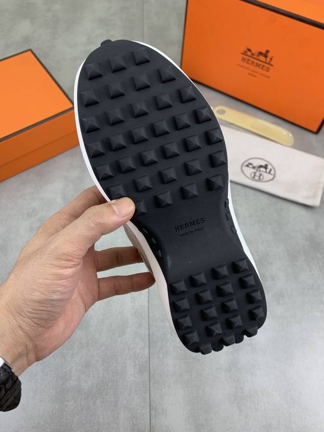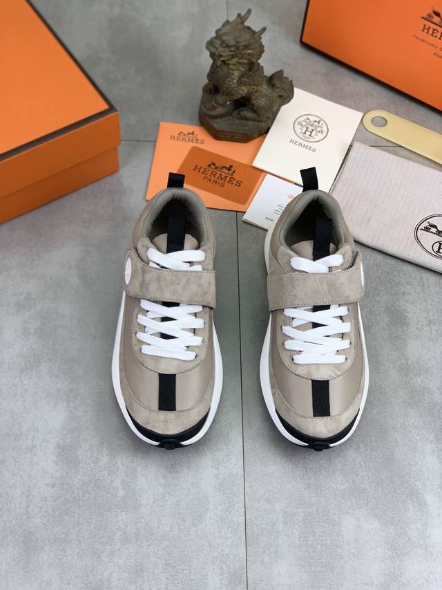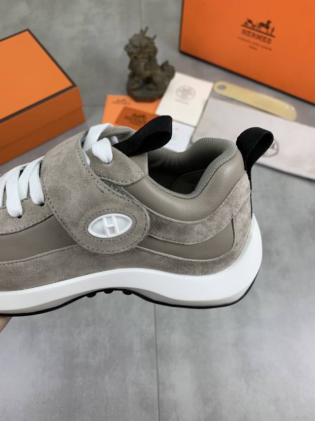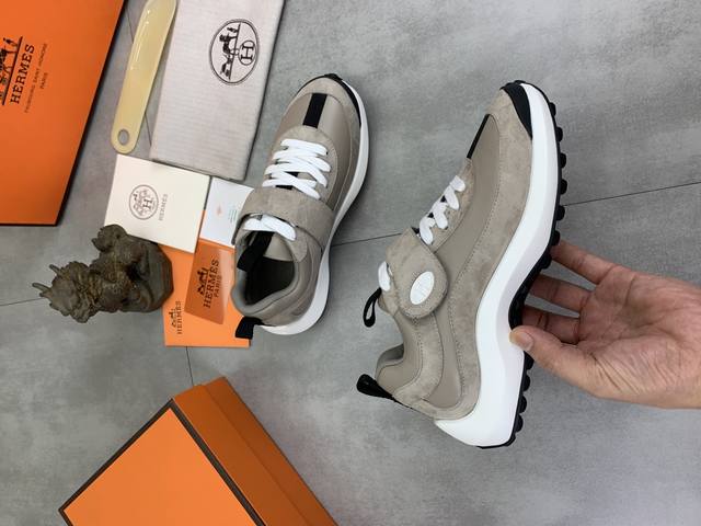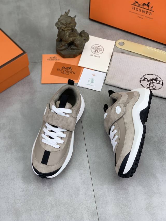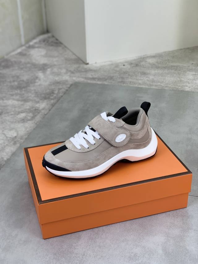 工厂P价P 实价 顶级版本 原单 Hermes爱马仕情侣款 Drift Sneaker 秋季新款休闲运动鞋 原版购入开发 做货 H家男士经典系列 科技透气面料搭配牛皮 休闲运动鞋 休闲之履运动老爹鞋结合高科技透气材质与牛皮,侧面H家专属纽扣装饰 大底满满H斜体设计和鲜艳色彩展现活力,延续品牌设计灵感。轻盈漫步都市,感受无拘舒适。 配送精美包装 面料:原版定制透气材质+头层牛皮 内里:牛皮垫脚 大底:开模抽空Pu+Tpu材质 Size :女34-40 41定做 男39-45 8款颜色可选 精品包装