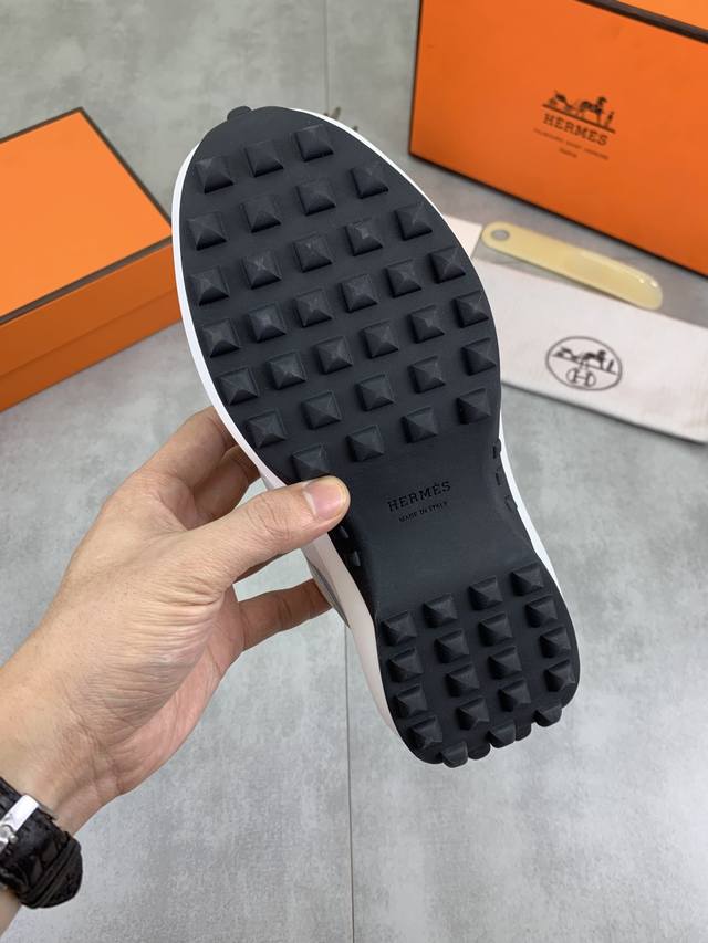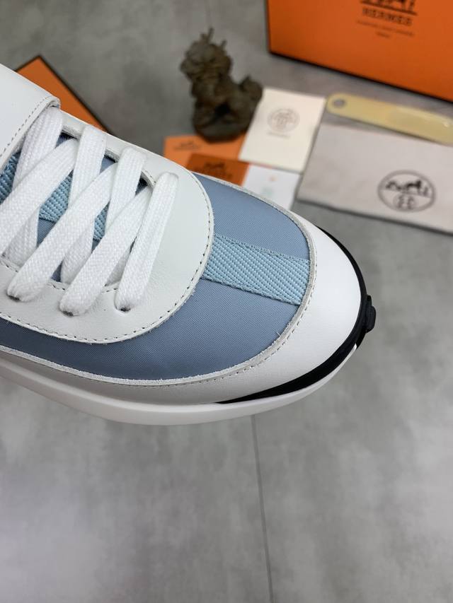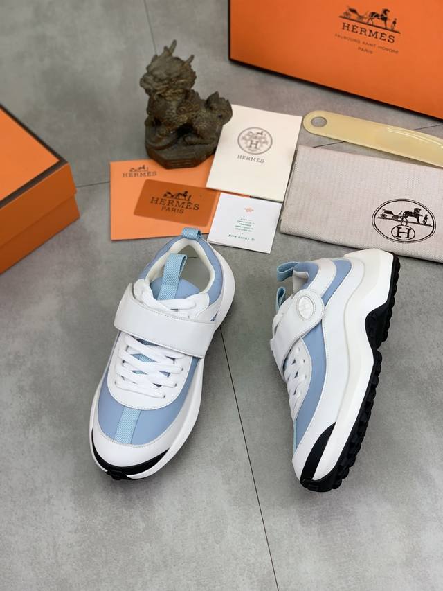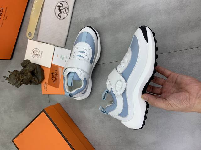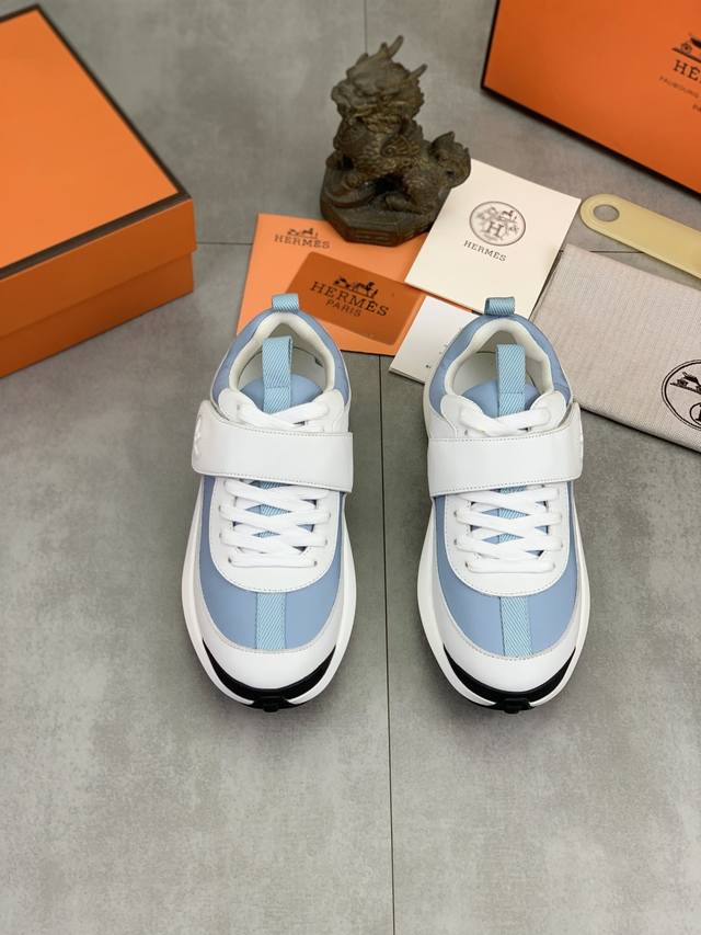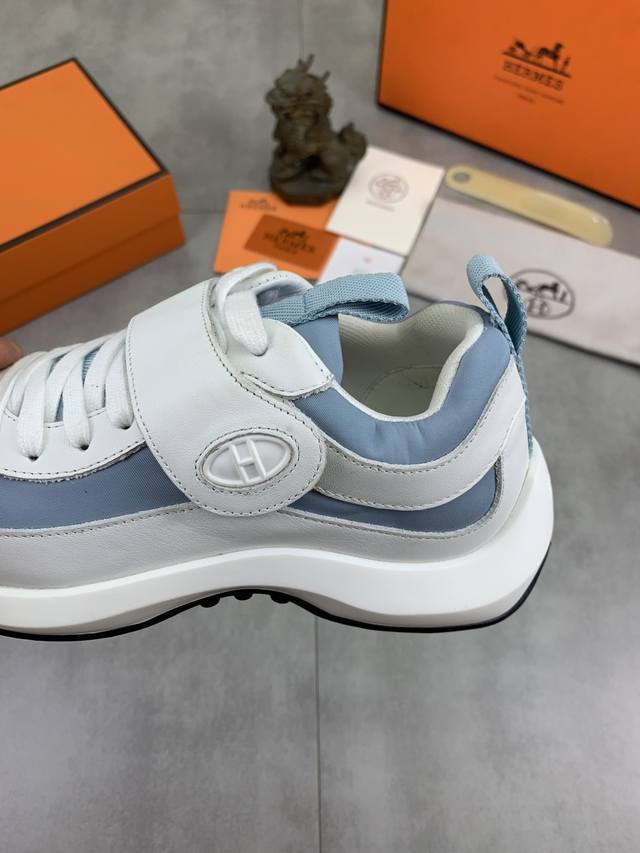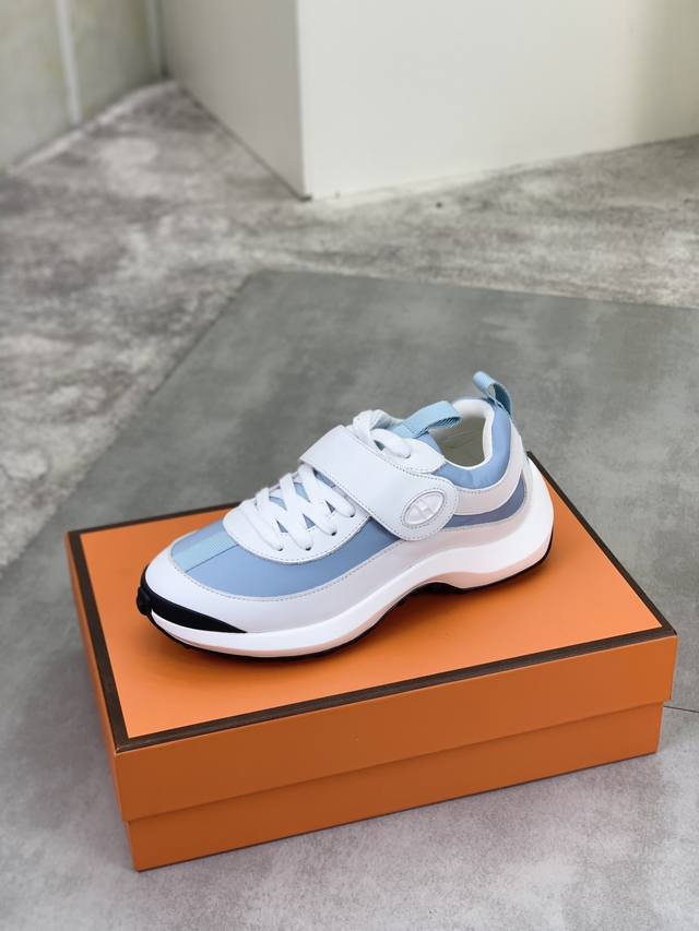 工厂P价P 实价 顶级版本 原单 Hermes爱马仕情侣款 Drift Sneaker 秋季新款休闲运动鞋 原版购入开发 做货 H家男士经典系列 科技透气面料搭配牛皮 休闲运动鞋 休闲之履运动老爹鞋结合高科技透气材质与牛皮,侧面H家专属纽扣装饰 大底满满H斜体设计和鲜艳色彩展现活力,延续品牌设计灵感。轻盈漫步都市,感受无拘舒适。 配送精美包装 面料:原版定制透气材质+头层牛皮 内里:牛皮垫脚 大底:开模抽空Pu+Tpu材质 Size :女34-40 41定做 8款颜色可选 精品包装
