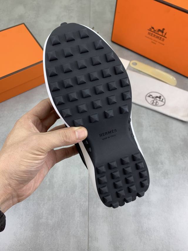 工厂P价P 实价 顶级版本 原单 Hermes爱马仕情侣款 Drift Sneaker 秋季新款休闲运动鞋 原版购入开发 做货 H家男士经典系列 科技透气面料搭配牛皮 休闲运动鞋 休闲之履运动老爹鞋结合高科技透气材质与牛皮,侧面H家专属纽扣装饰 大底满满H斜体设计和鲜艳色彩展现活力,延续品牌设计灵感。轻盈漫步都市,感受无拘舒适。 配送精美包装 面料:原版定制透气材质+头层牛皮 内里:牛皮垫脚 大底:开模抽空Pu+Tpu材质 Size :女34-40 41定做 男39-45 8款颜色可选 精品包装