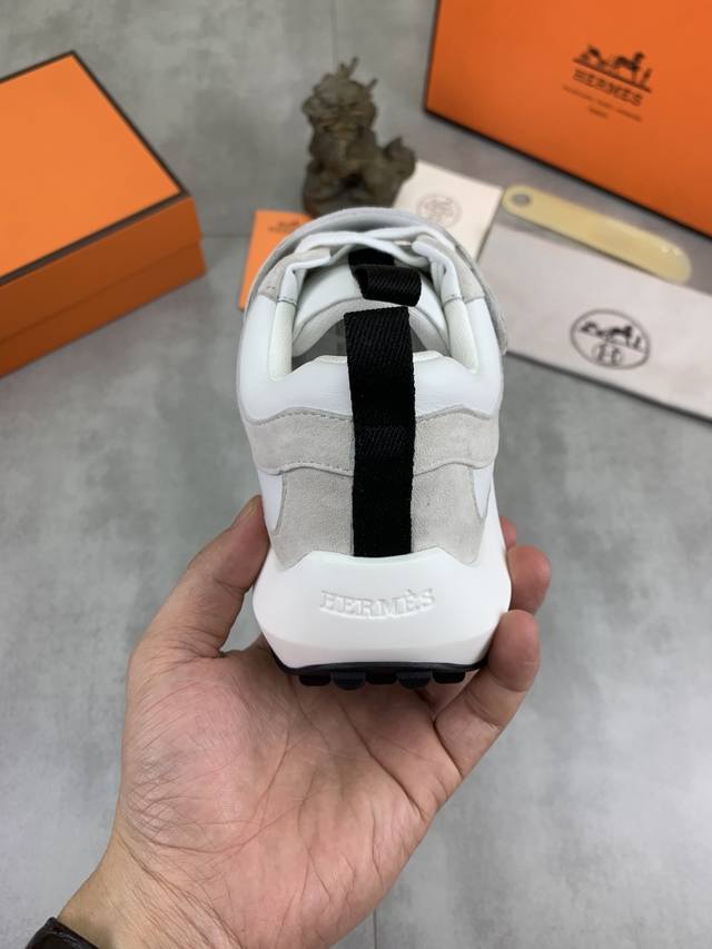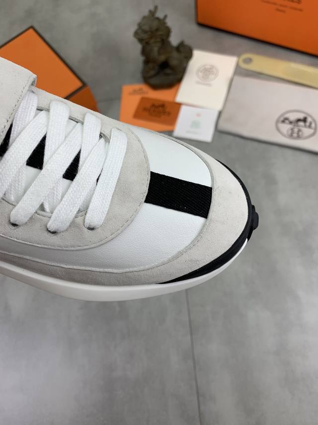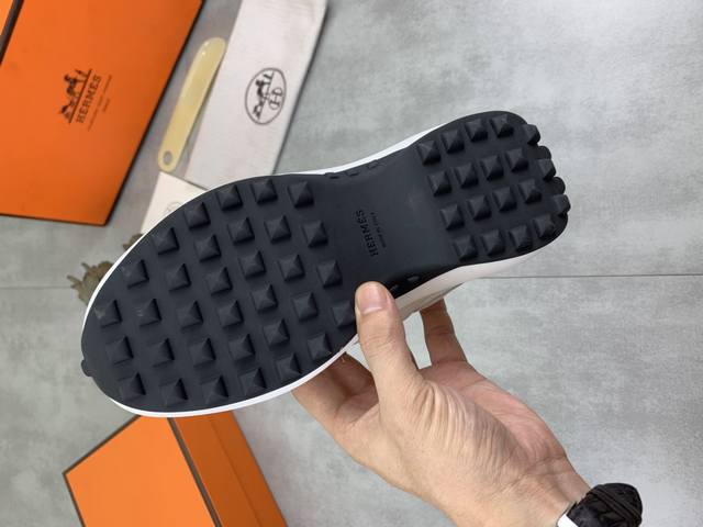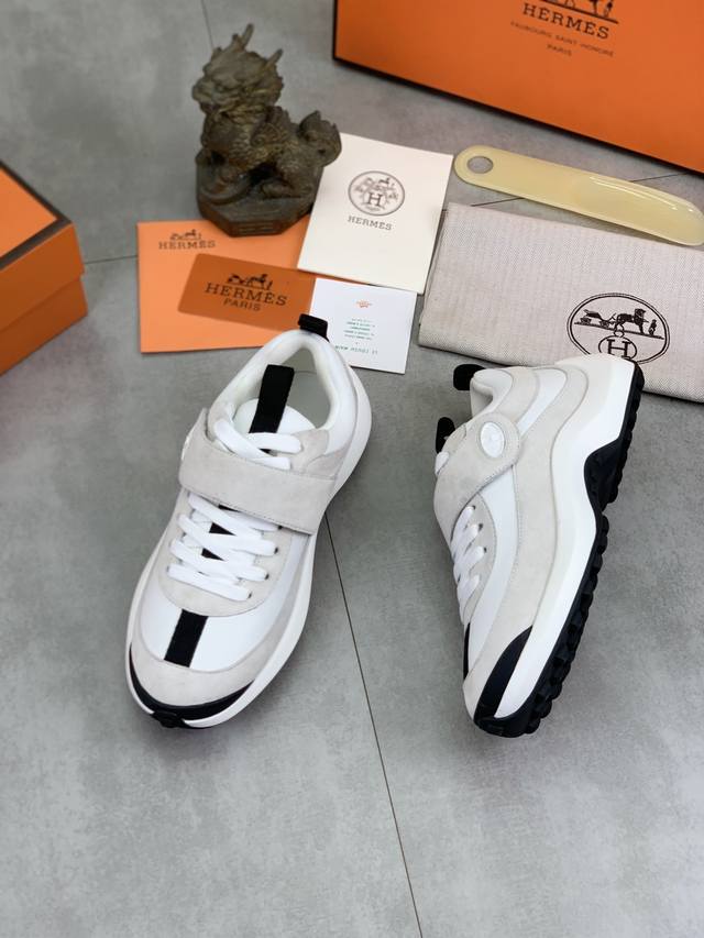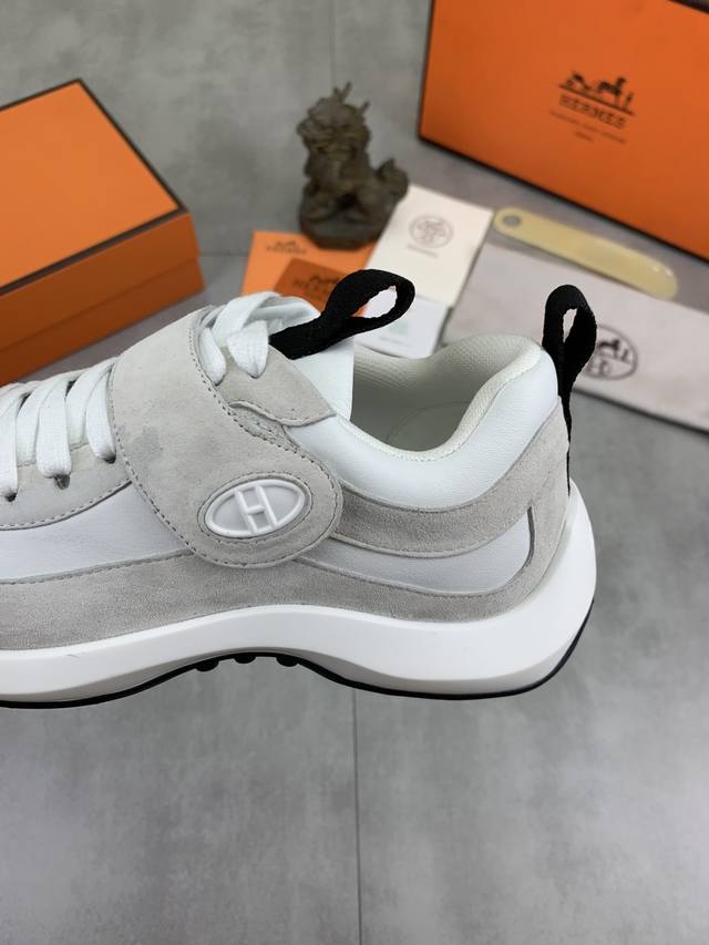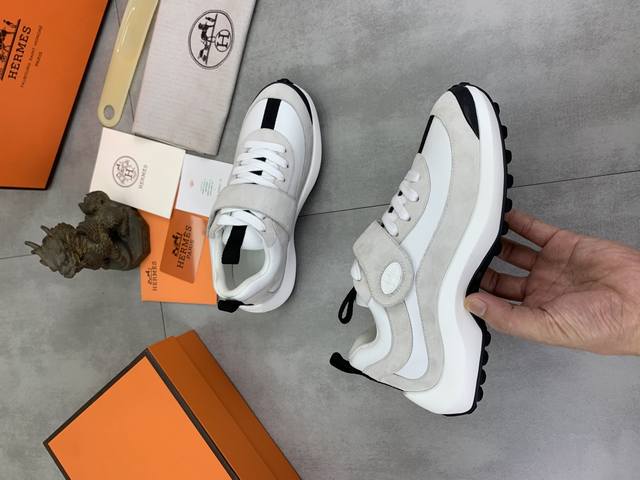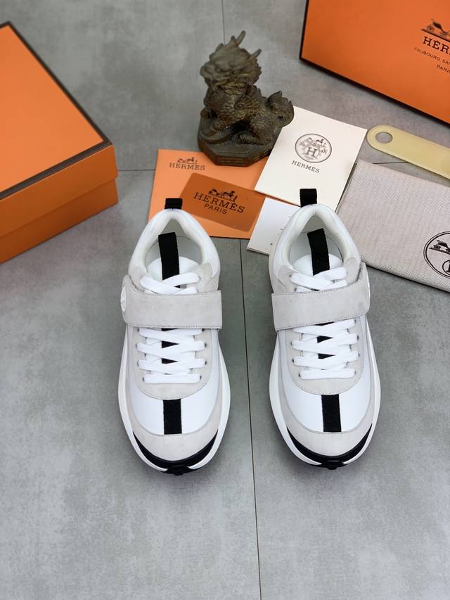 工厂P价P 实价 顶级版本 原单 Hermes爱马仕情侣款 Drift Sneaker 秋季新款休闲运动鞋 原版购入开发 做货 H家男士经典系列 科技透气面料搭配牛皮 休闲运动鞋 休闲之履运动老爹鞋结合高科技透气材质与牛皮,侧面H家专属纽扣装饰 大底满满H斜体设计和鲜艳色彩展现活力,延续品牌设计灵感。轻盈漫步都市,感受无拘舒适。 配送精美包装 面料:原版定制透气材质+头层牛皮 内里:牛皮垫脚 大底:开模抽空Pu+Tpu材质 Size :女34-40 41定做 男39-45 8款颜色可选 精品包装
