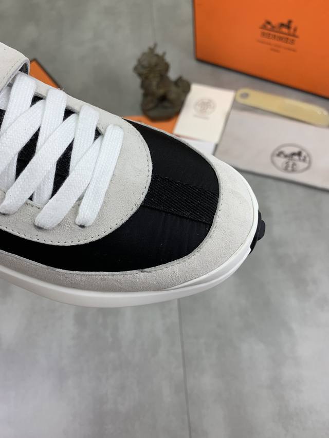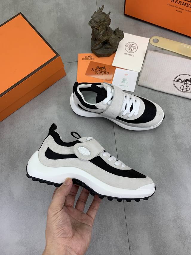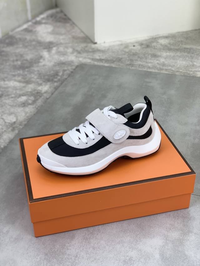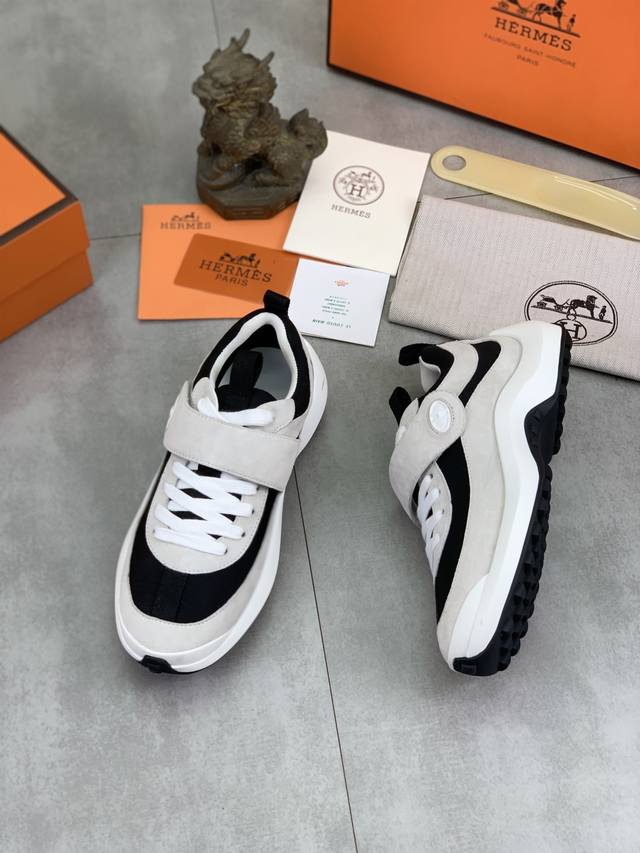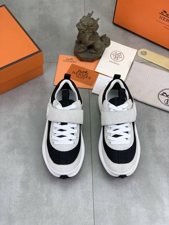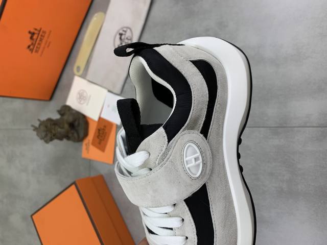 工厂P价P 实价 顶级版本 原单 Hermes爱马仕情侣款 Drift Sneaker 秋季新款休闲运动鞋 原版购入开发 做货 H家男士经典系列 科技透气面料搭配牛皮 休闲运动鞋 休闲之履运动老爹鞋结合高科技透气材质与牛皮,侧面H家专属纽扣装饰 大底满满H斜体设计和鲜艳色彩展现活力,延续品牌设计灵感。轻盈漫步都市,感受无拘舒适。 配送精美包装 面料:原版定制透气材质+头层牛皮 内里:牛皮垫脚 大底:开模抽空Pu+Tpu材质 Size :女34-40 41定做 男39-45 8款颜色可选 精品包装
