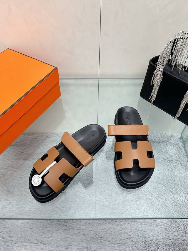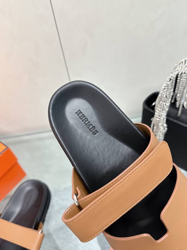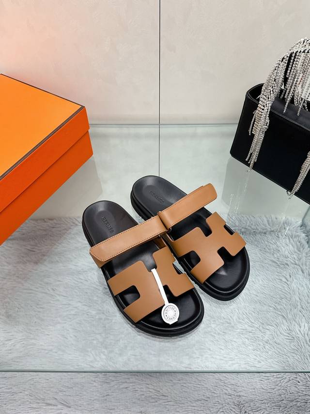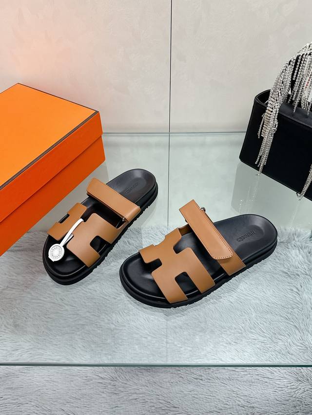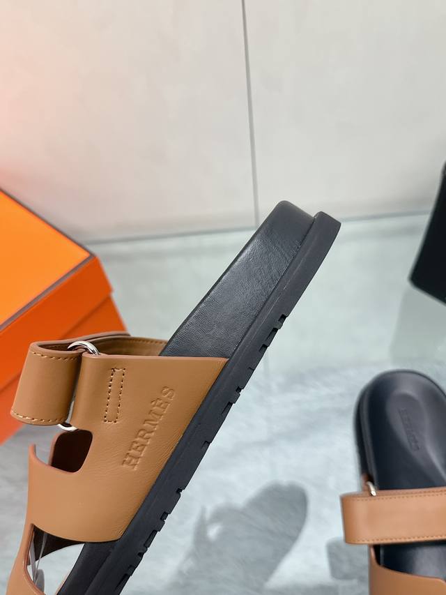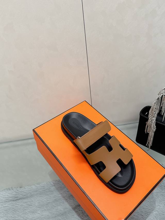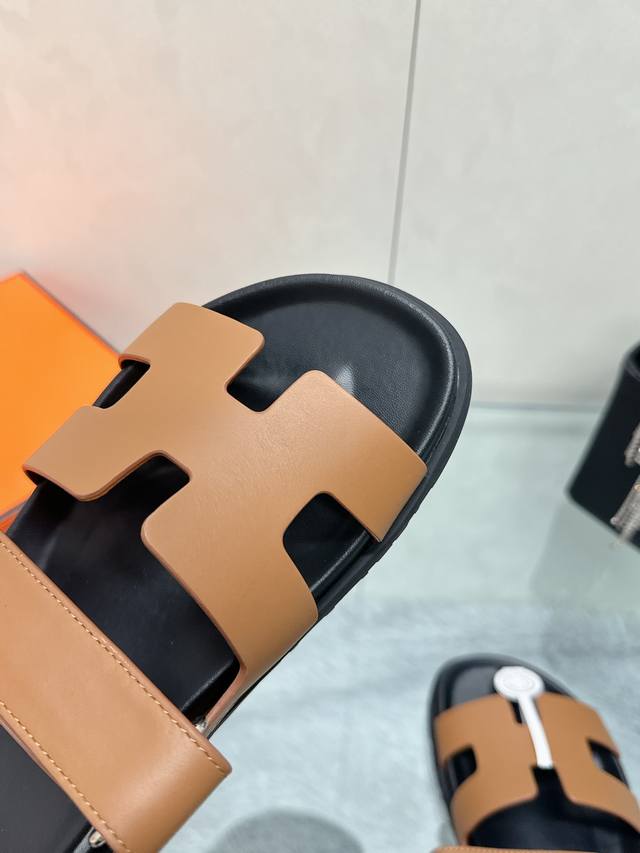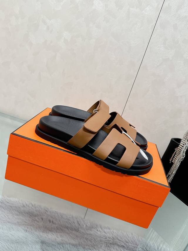 Hermes 情侣款爱马仕拖鞋 官网最新专柜同步新款Oran牛皮面H拖鞋 巴黎原版飞回正品开模完美打造最高品质...