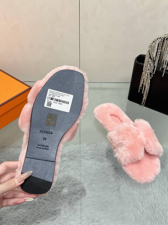 工厂P价P: Hermes爱马仕经典H拖 羊毛制造 高端货 经典常青树系列单品 面料 :皮毛一体毛 包中底料 :毛质剪糕直毛 所有中底料 :真皮皮浆+意大利做法组合中底 大底 :意大利真皮底手工打钉工艺 码数:35-40 原版全套包装 细节肉眼可见原版复刻 原单货可对比