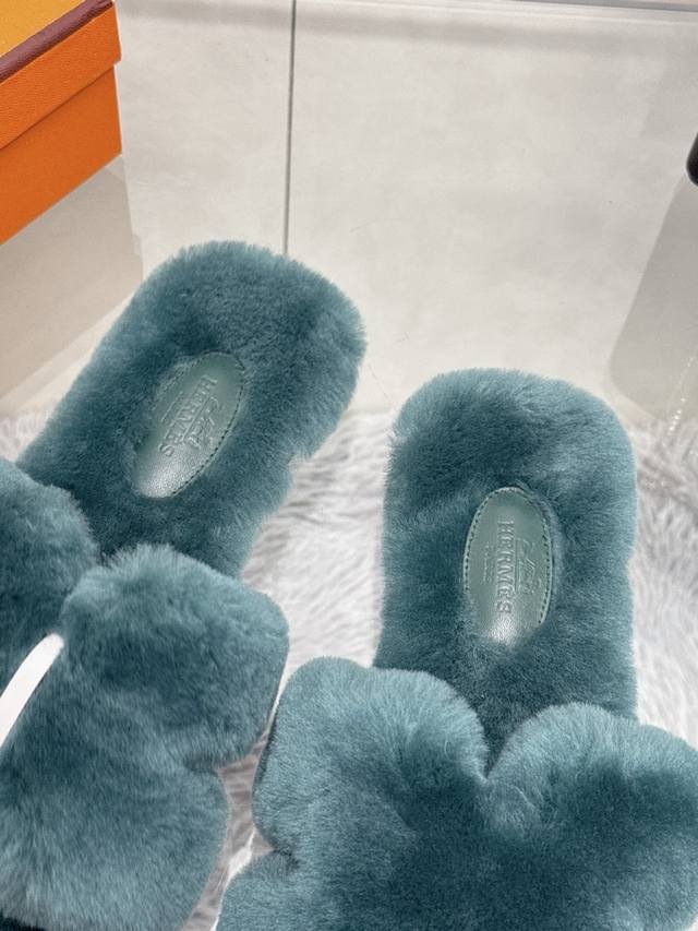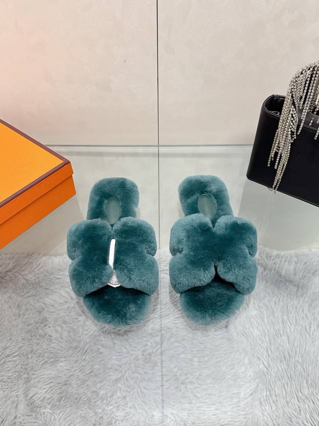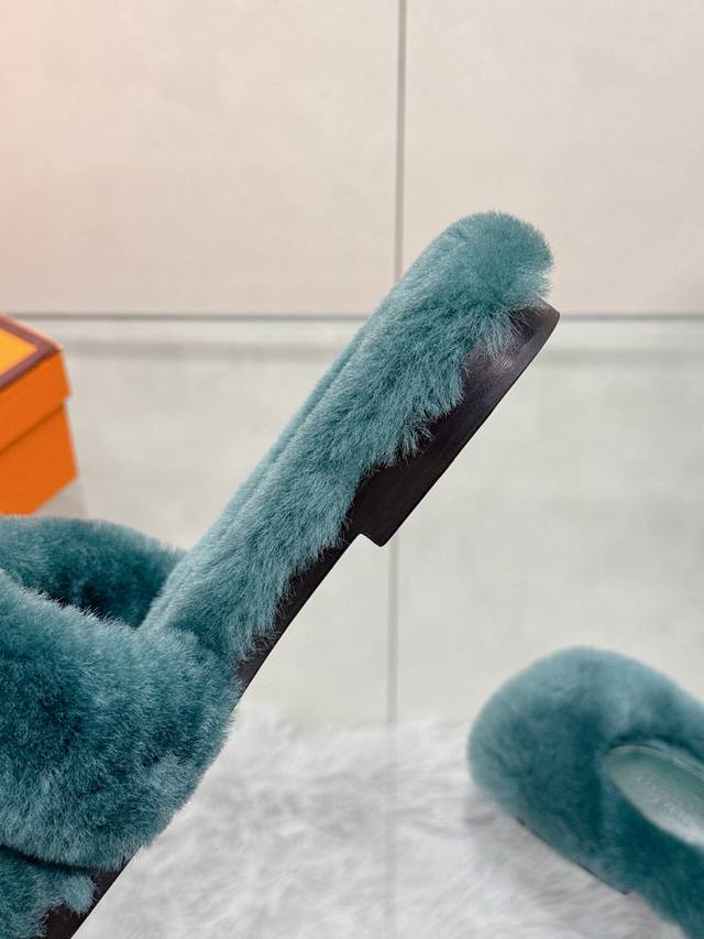 工厂p价 女装女鞋 运动原单 爱马仕皮毛一体卷糕毛H拖 今年面料均选用A+皮毛一体卷糕毛 毛茸茸的...