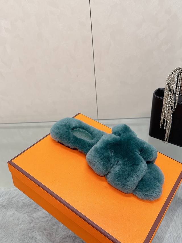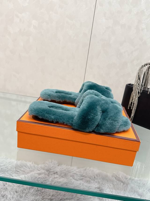 工厂P价P: Hermes爱马仕经典H拖 羊毛制造 高端货 经典常青树系列单品 面料 :皮毛一体毛 包中底料 :毛质剪糕直毛 所有中底料 :真皮皮浆+意大利做法组合中底 大底 :意大利真皮底手工打钉工艺 码数:35-40 原版全套包装 细节肉眼可见原版复刻 原单货可对比