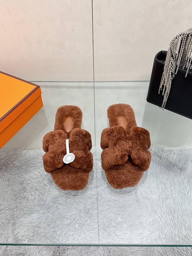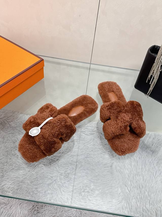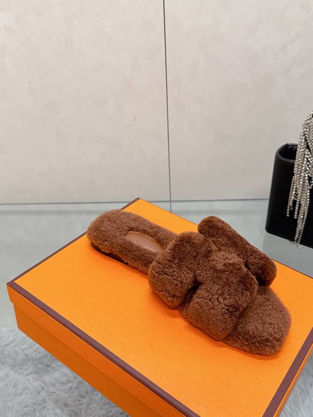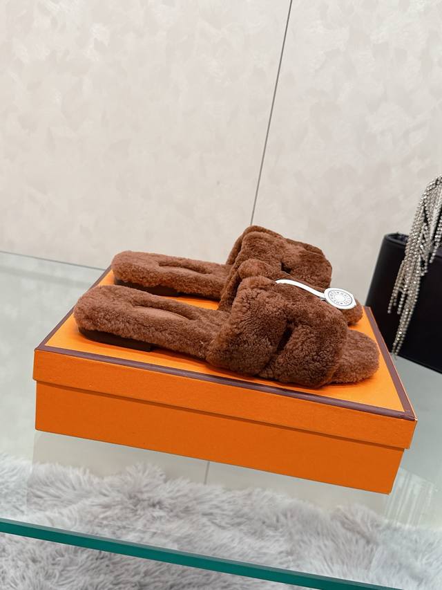 工厂P价P: Hermes爱马仕经典H拖 羊毛制造 高端货 经典常青树系列单品 面料 :皮毛一体毛 包中底料 :毛质剪糕直毛 所有中底料 :真皮皮浆+意大利做法组合中底 大底 :意大利真皮底手工打钉工艺 码数:35-40 原版全套包装 细节肉眼可见原版复刻 原单货可对比