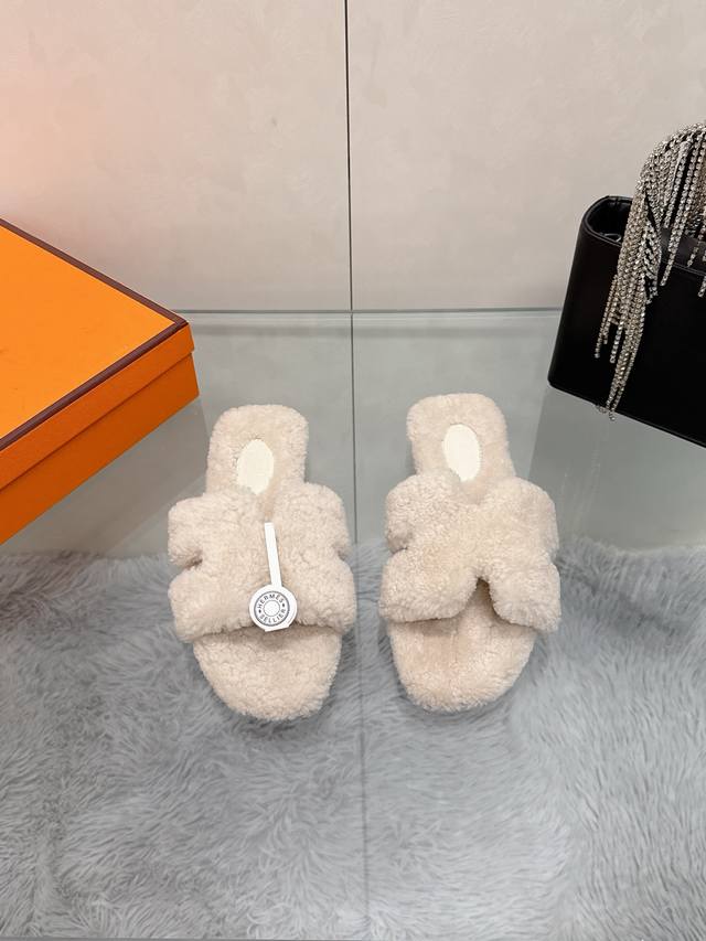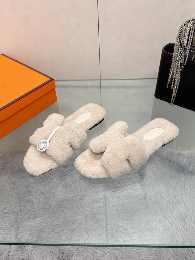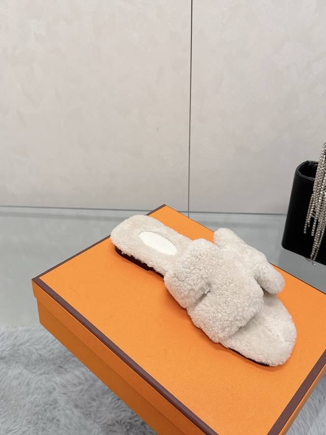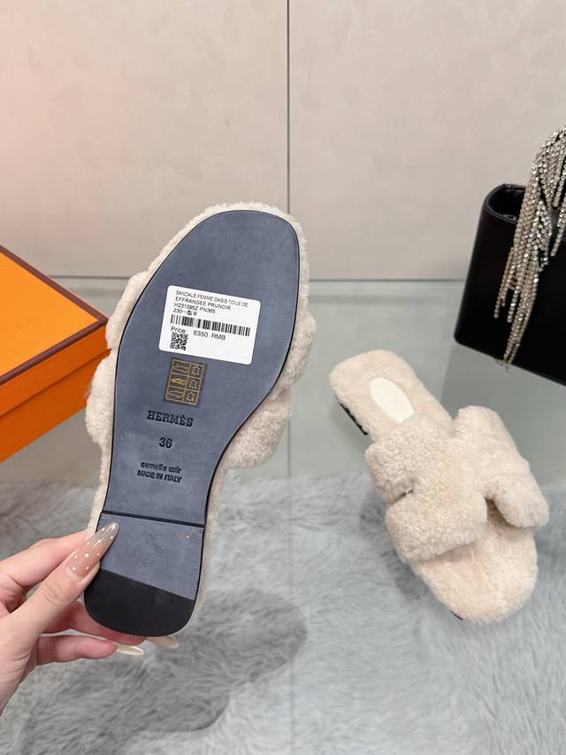 工厂P价P: Hermes爱马仕经典H拖 羊毛制造 高端货 经典常青树系列单品 面料 :皮毛一体毛 包中底料 :毛质剪糕直毛 所有中底料 :真皮皮浆+意大利做法组合中底 大底 :意大利真皮底手工打钉工艺 码数:35-40 原版全套包装 细节肉眼可见原版复刻 原单货可对比