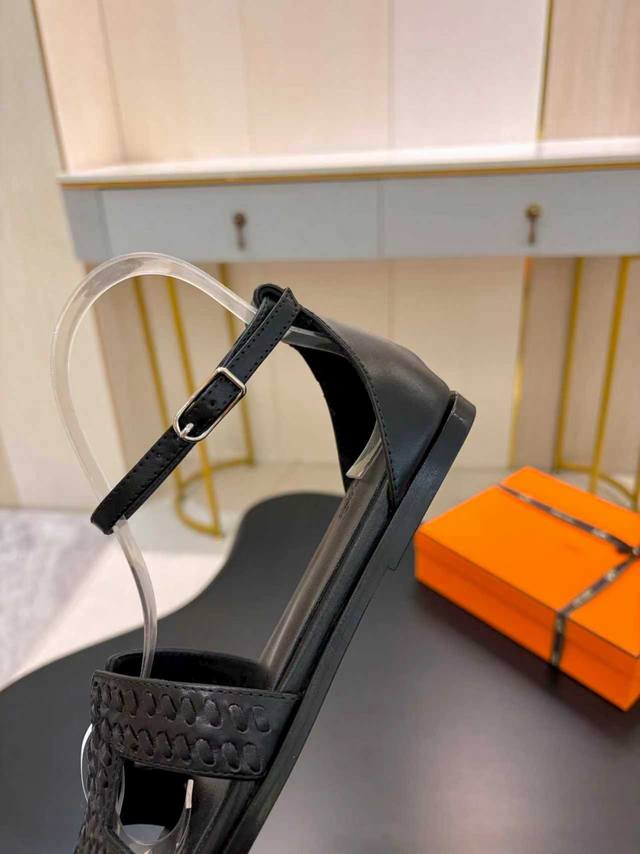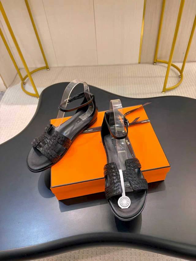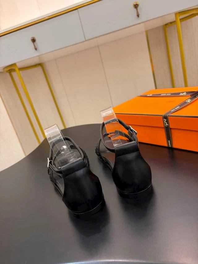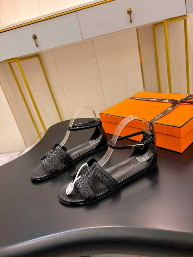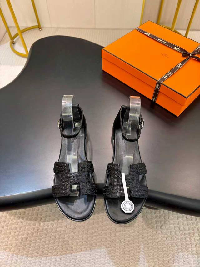 爱玛仕 25 2025春夏新品 顶级版本经典H型Oran粗跟拖鞋系列 鞋面:原版特定牛皮 内里:进口混种羊皮 大底:原版意大利真皮大底 跟高:平底 5Cm 鞋码