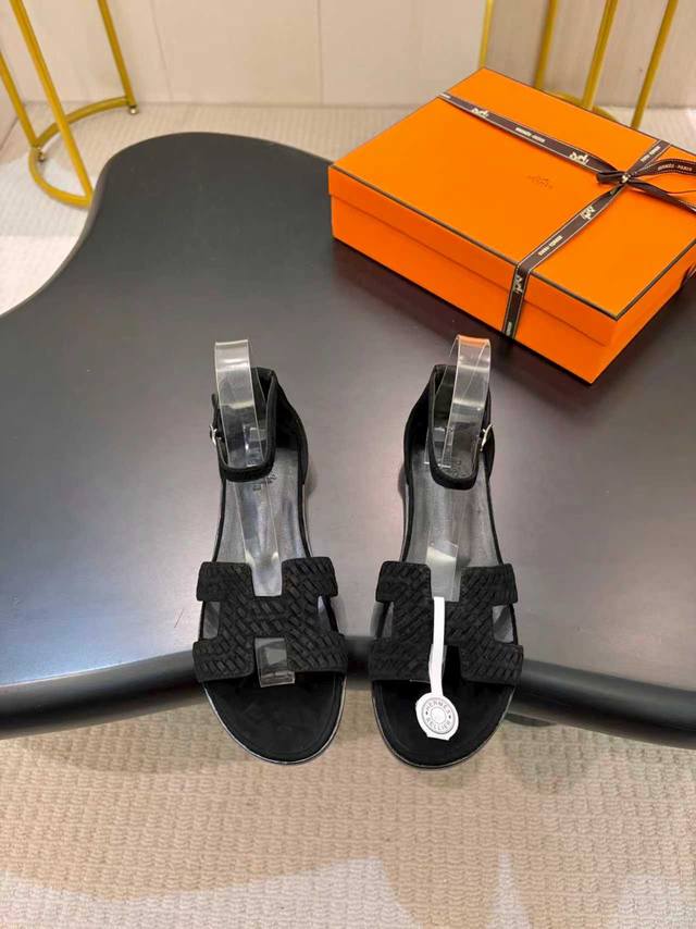 / 爱玛仕 25 2025春夏新品 顶级版本经典H型Oran粗跟拖鞋系列 鞋面:原版特定牛皮 内里:进口混种羊皮 大底:原版意大利真皮大底 跟高:平底 5Cm 鞋码