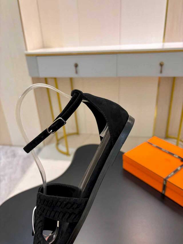 爱玛仕 25 2025春夏新品 顶级版本经典H型Oran粗跟拖鞋系列 鞋面:原版特定牛皮 内里:进口混种羊皮 大底:原版意大利真皮大底 跟高:平底 5Cm 鞋码