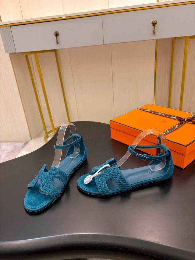 / 爱玛仕 25 2025春夏新品 顶级版本经典H型Oran粗跟拖鞋系列 鞋面:原版特定牛皮 内里:进口混种羊皮 大底:原版意大利真皮大底 跟高:平底 5Cm 鞋码