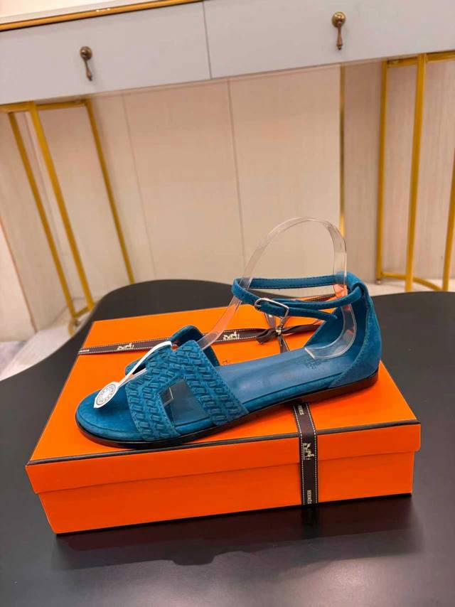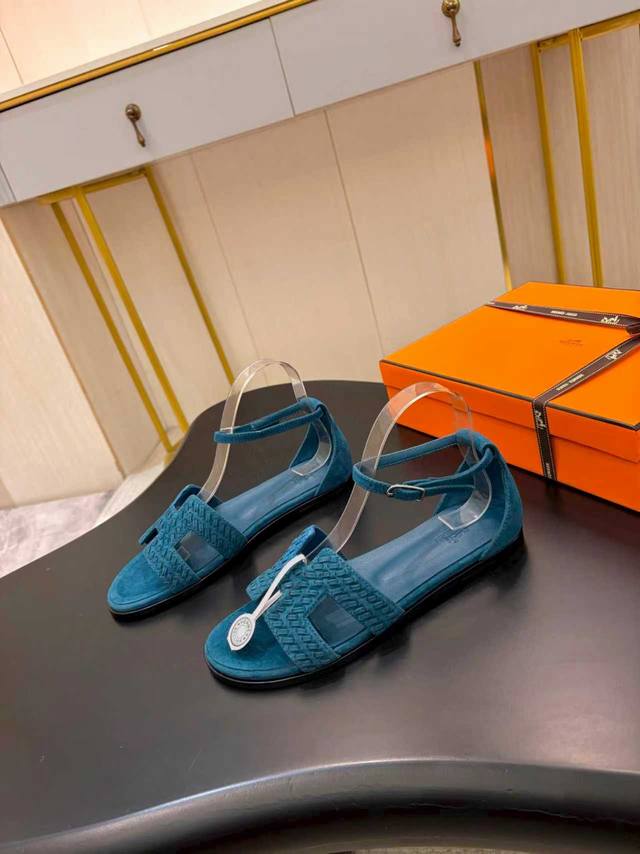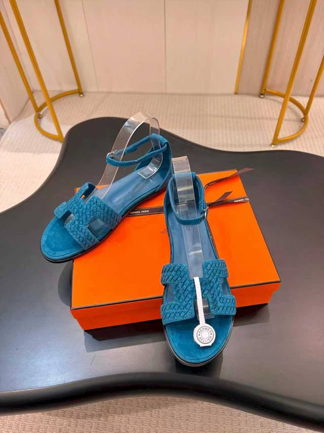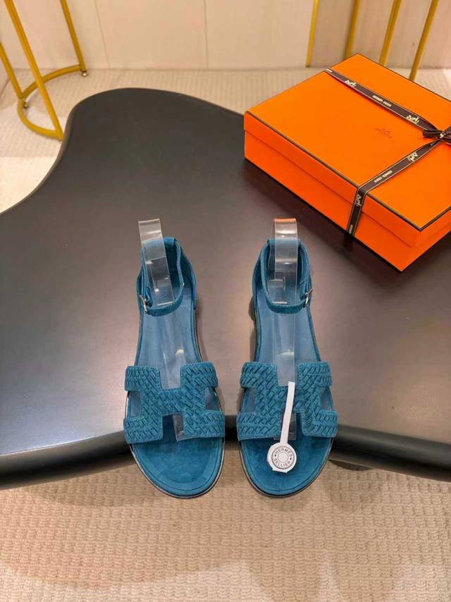 爱玛仕 25 2025春夏新品 顶级版本经典H型Oran粗跟拖鞋系列 鞋面:原版特定牛皮 内里:进口混种羊皮 大底:原版意大利真皮大底 跟高:平底 5Cm 鞋码