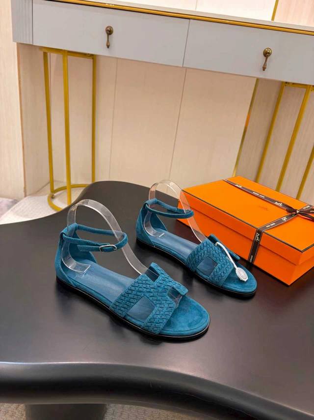 顶级 Hermes 爱马仕麻绳底H凉鞋新款配色Oran凉鞋经典系列 独家原版开模 时尚又百搭 超级舒服 每个细节都做到极致 原版手掌纹...