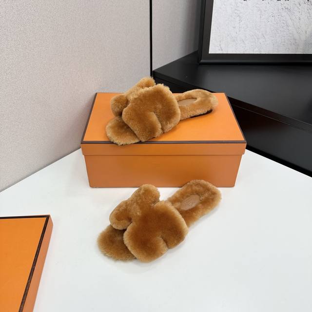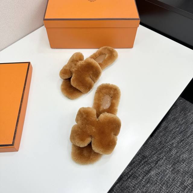 / 爱马仕最新款 时尚潮流最新款泰迪羊毛H拖秋冬款平底毛拖,上脚超百搭暖底,女主们的最爱 1:面料:泰迪羊真皮毛 2:里料:泰迪羊真皮毛 3踮脚材料:泰迪羊真皮毛