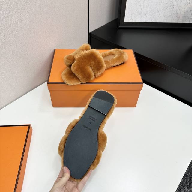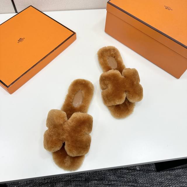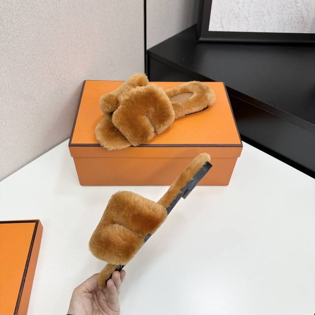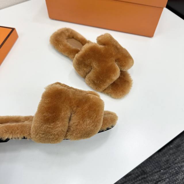 爱马仕最新款 时尚潮流最新款泰迪羊毛H拖秋冬款平底毛拖,上脚超百搭暖底,女主们的最爱 1:面料:泰迪羊真皮毛 2:里料:泰迪羊真皮毛 3踮脚材料:泰迪羊真皮毛 4:大底:真皮大底 5码数:35-43码, 注:41、42、订做