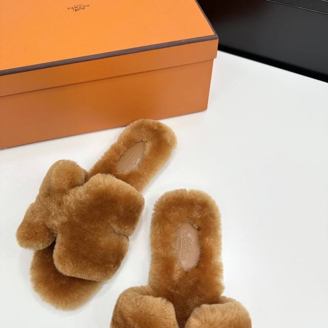 爱马仕最新款 时尚潮流最新款泰迪羊毛H拖秋冬款平底毛拖,上脚超百搭暖底,女主们的最爱 1:面料:泰迪羊真皮毛 2:里料:泰迪羊真皮毛 3踮脚材料:泰迪羊真皮毛