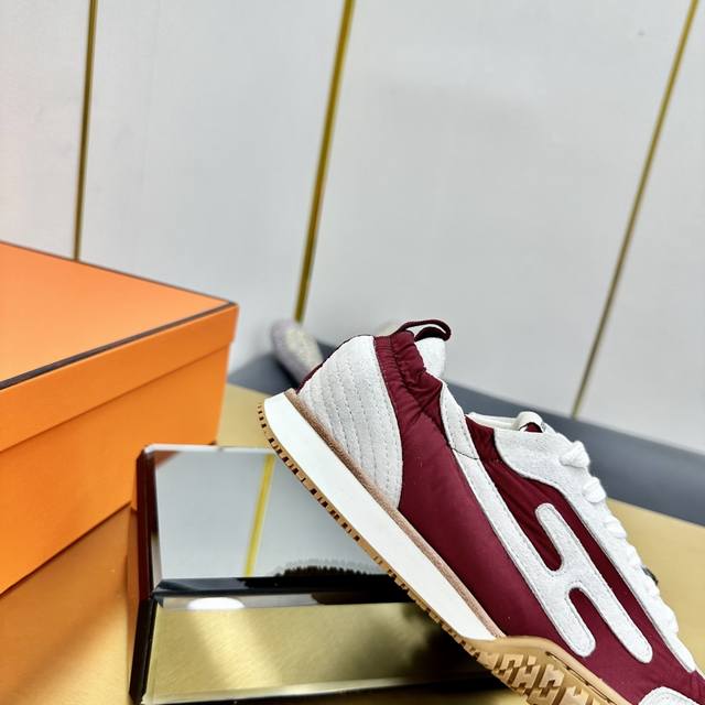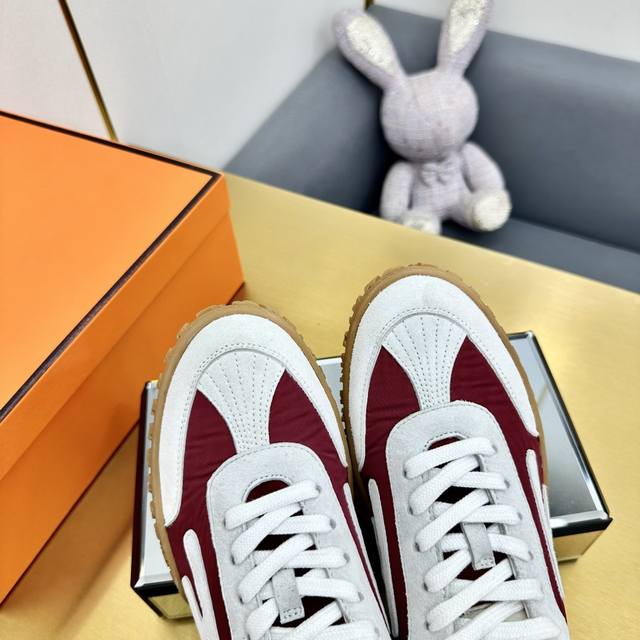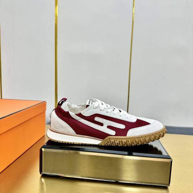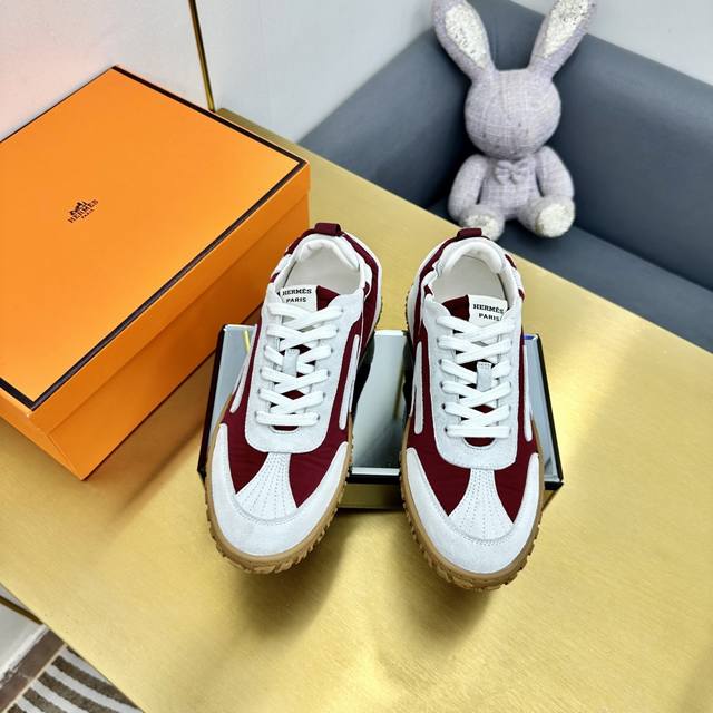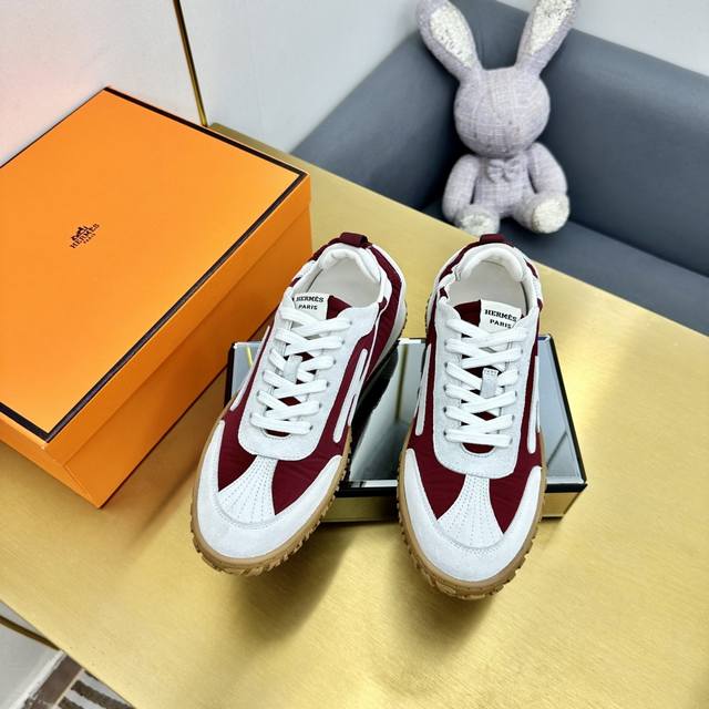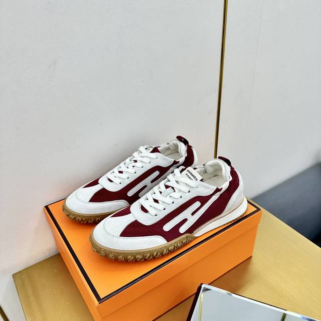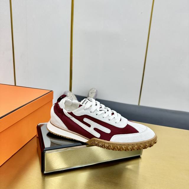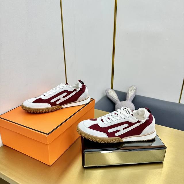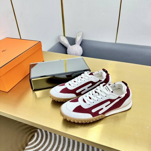 出厂价pp Herme* 爱马仕Bouncing运动鞋 男士休闲运动鞋 鞋面牛皮拼接高端网布打造 进口材质 质感十足 轻盈鞋底装饰撞色图案...