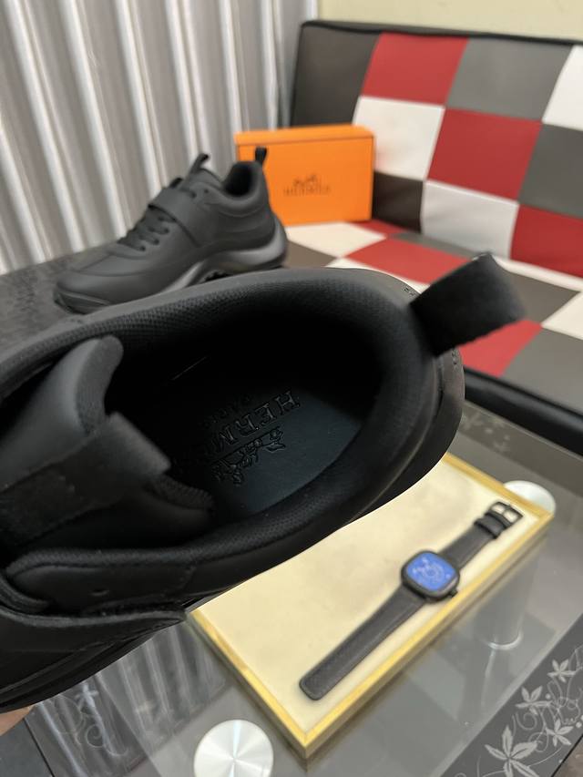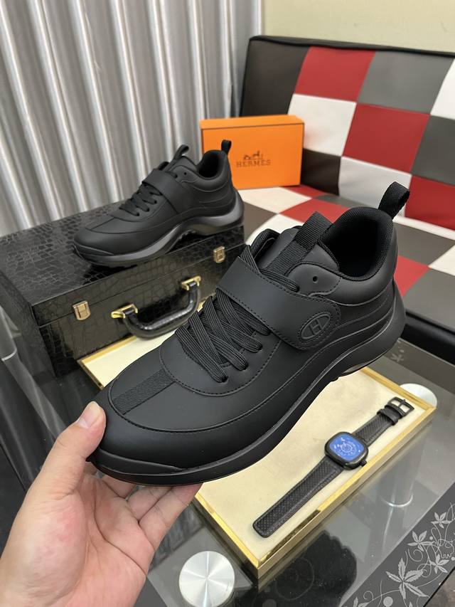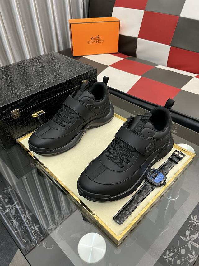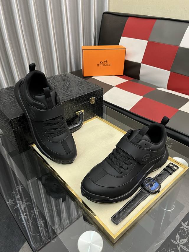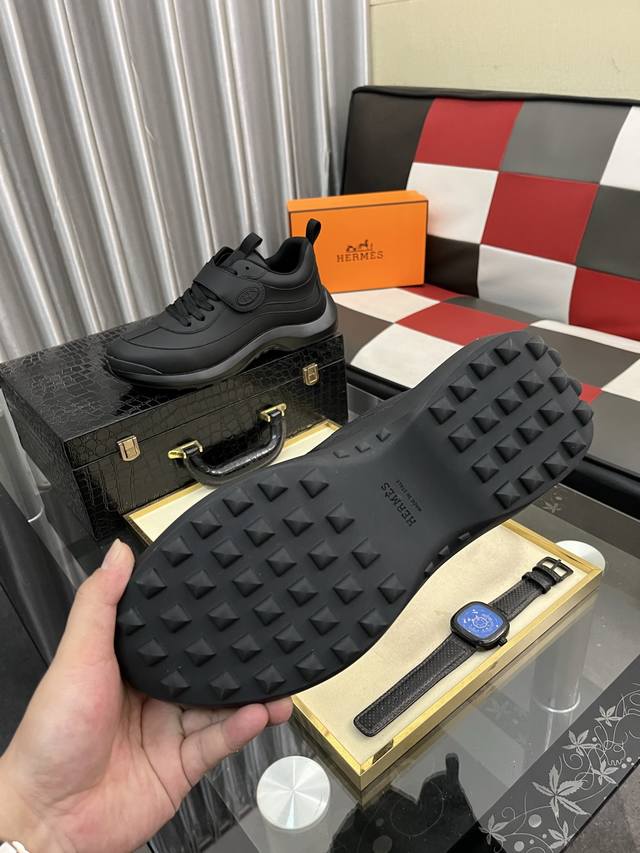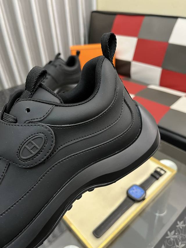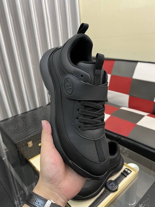 工厂p价 Hermes 爱马仕 Hugo厚底运动鞋休闲男鞋 这款运动鞋采用进口头层牛皮拼接透气网面设计 对比色设计打造动感的现代造型...