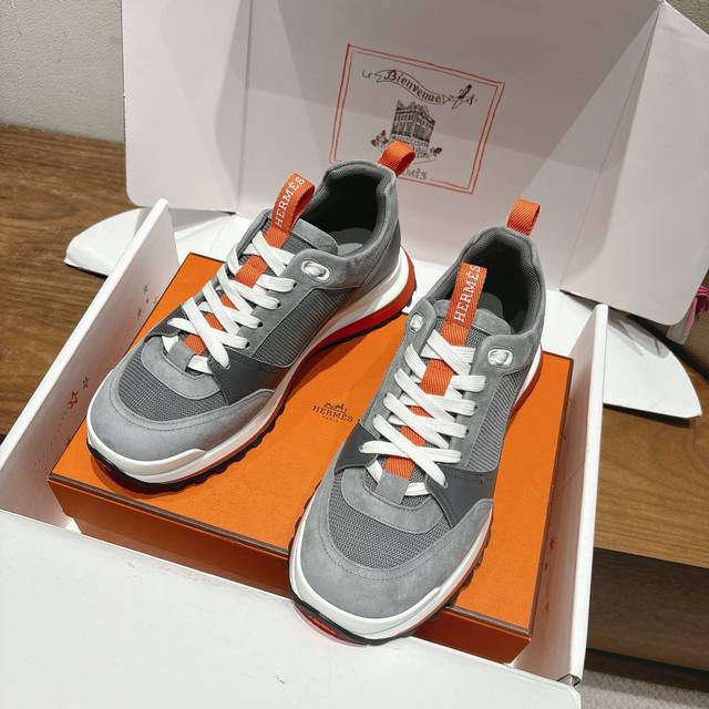 Herme* 爱马仕Bouncing运动鞋 男士休闲运动鞋 鞋面牛皮水洗羊里 质感十足 轻盈鞋底装饰撞色图案 打造百搭时尚风格 码数 38-44...