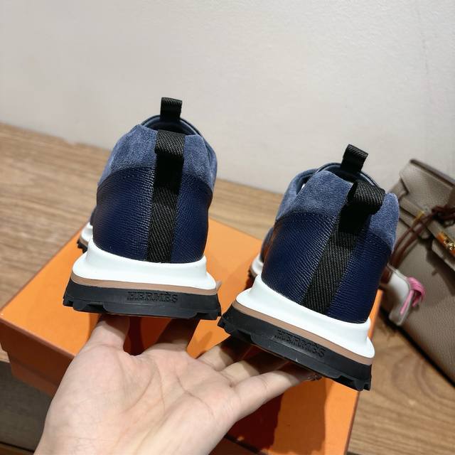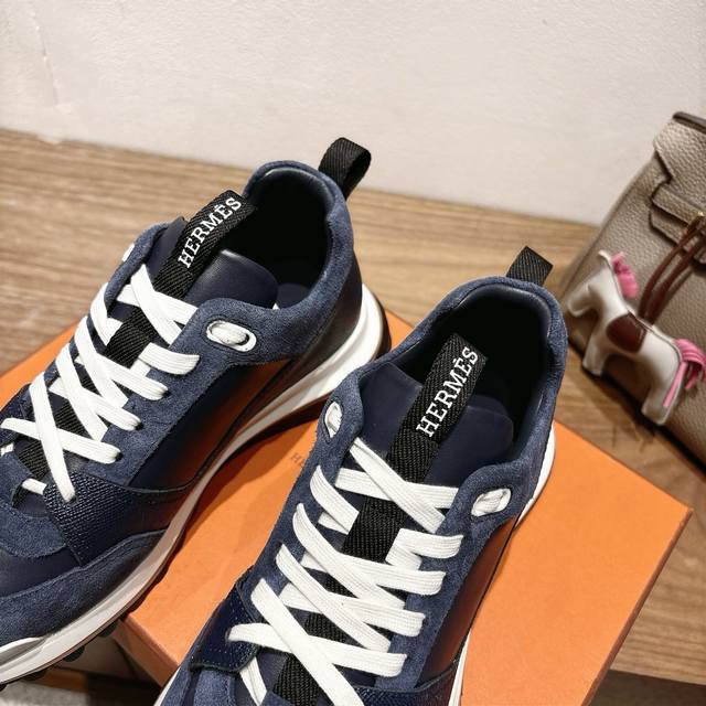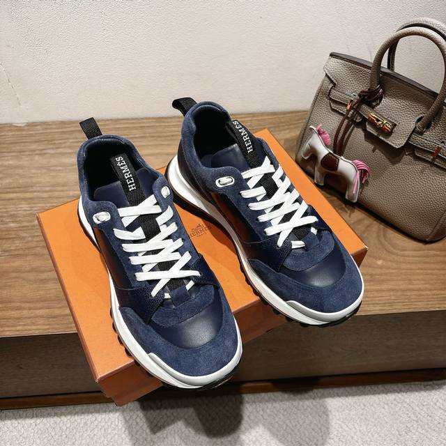H爱马仕Bouncing运动鞋,男士休闲运动鞋,鞋面牛皮拼接高端网布打造,进口材质,质感十足,轻盈鞋底装饰撞色图案,打造百搭...