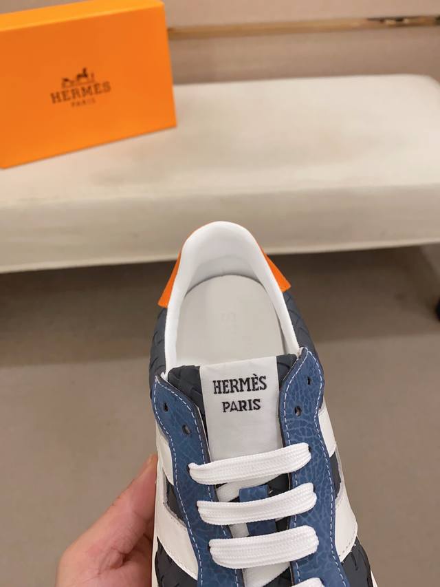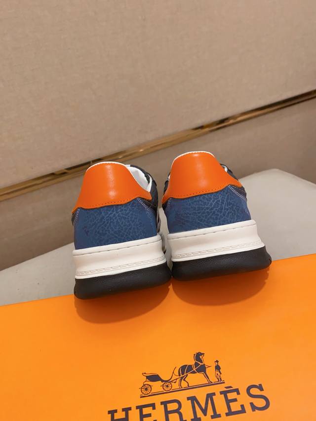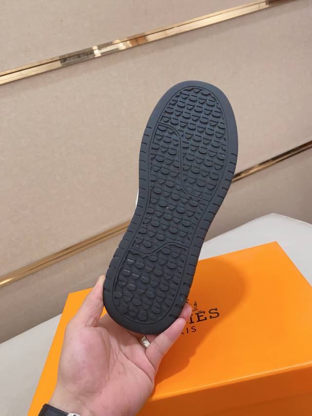 Hermes爱马仕经典系列 情侣款 休闲 运动鞋 滑板鞋 小牛皮运动鞋 超级轻盈鞋底 简介大气 意大利制造 鞋背装饰爱马仕经典锁扣...