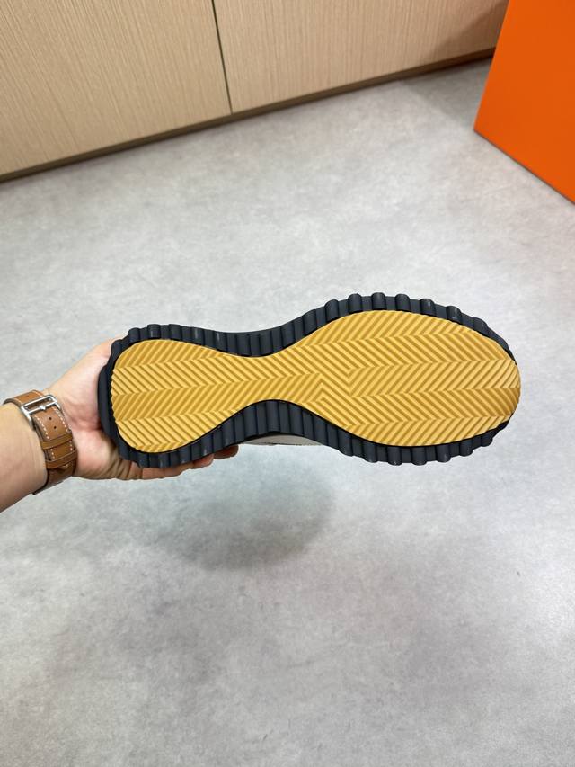 H爱马仕bouncing运动鞋,男士休闲运动鞋,鞋面牛皮拼接高端网布打造,进口材质,质感十足,轻盈鞋底装饰撞色图案,打造百搭...
