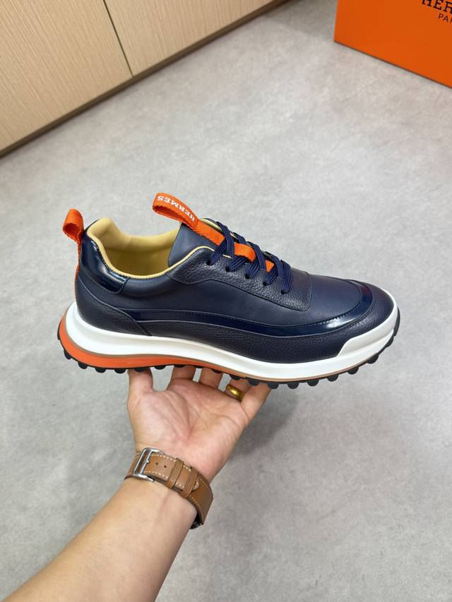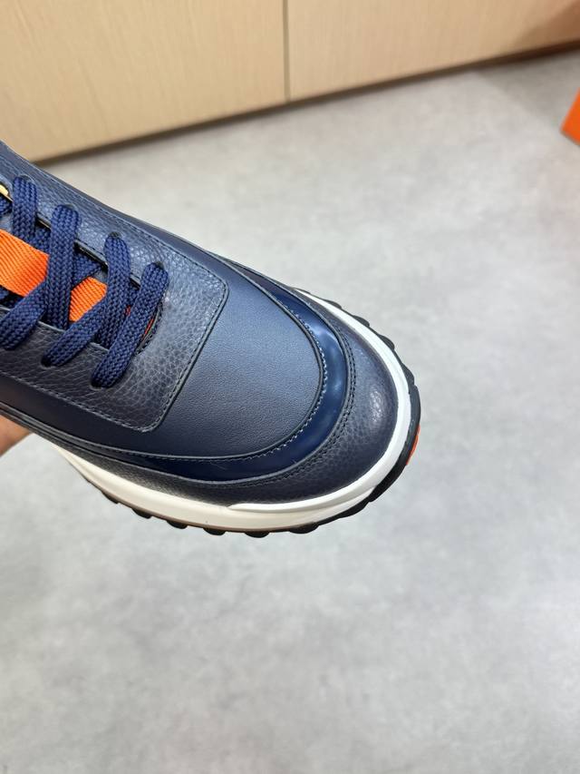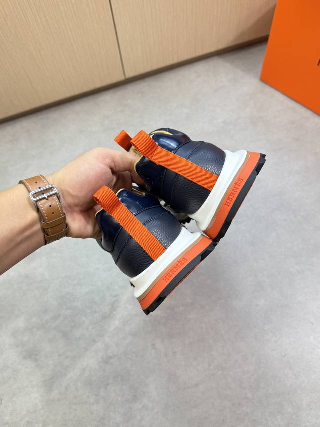 调工厂P价 男装男鞋 运动原单 Hermes 爱马仕 -高端品质 原单 休闲运动鞋 -鞋面:荔纹小牛皮、纳帕小牛皮、鞋身车缝撞色引边配色、鞋舌.后跟.品牌Logo织带 -内里:水染牛皮 -大底:超轻Tpr 橡胶;双色成型大底 -超高品控 做工精细:凸显 高端 贵气 档次 -Size :39-44 38,45,可订做
