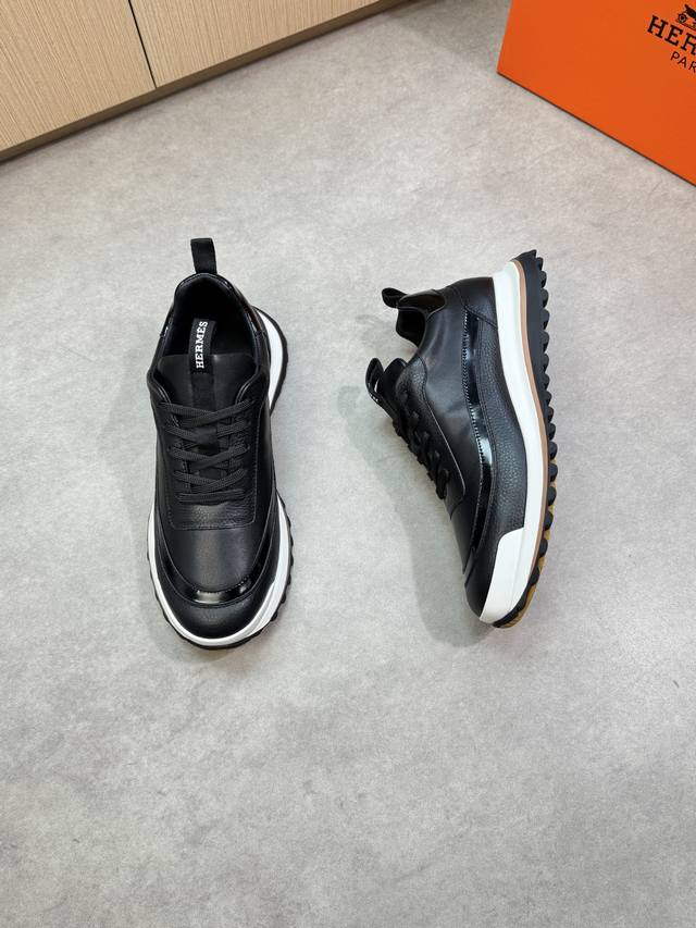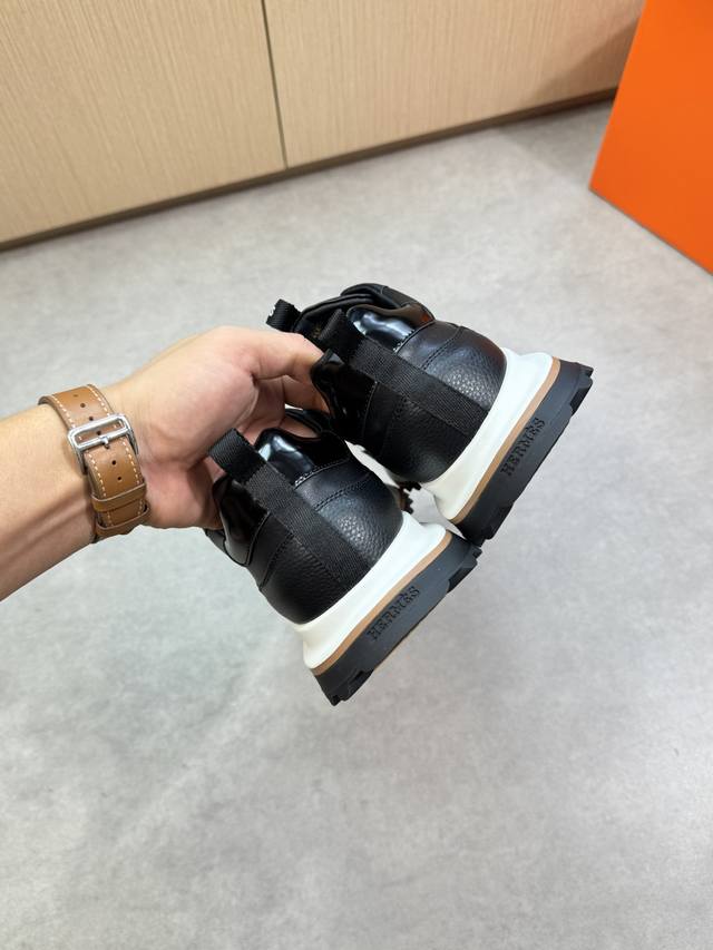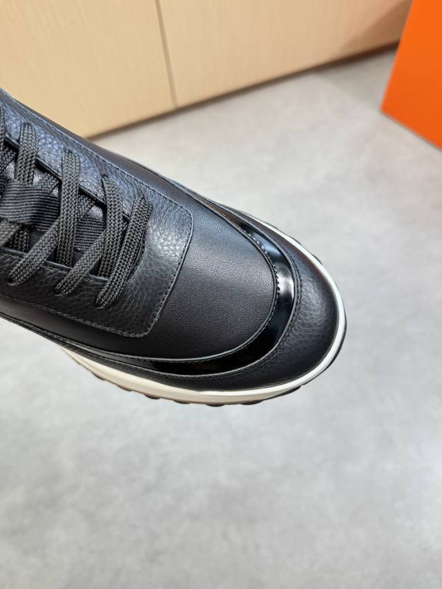 调工厂P价 男装男鞋 运动原单 Hermes 爱马仕 -高端品质 原单 休闲运动鞋 -鞋面:荔纹小牛皮、纳帕小牛皮、鞋身车缝撞色引边配色、鞋舌.后跟.品牌Log