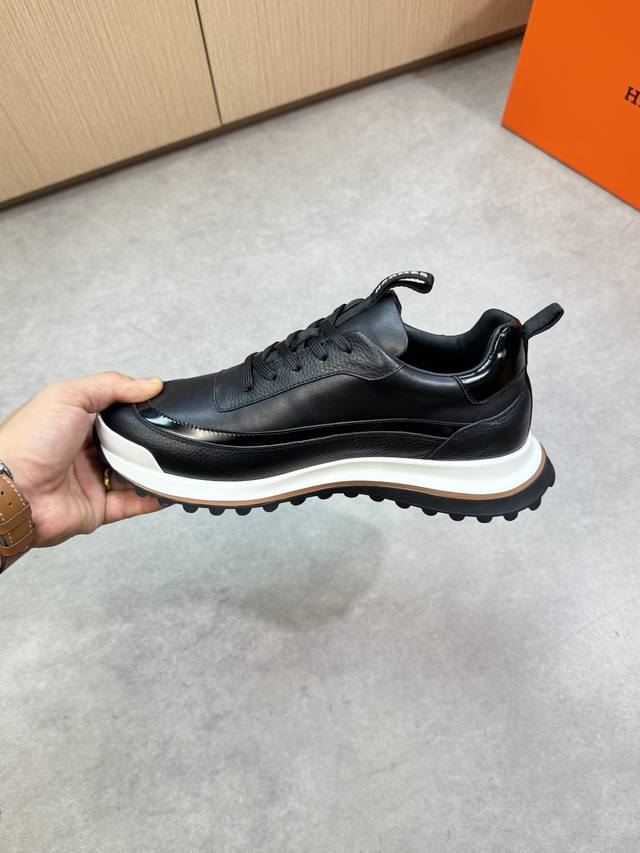 调工厂P价 男装男鞋 运动原单 Hermes 爱马仕 -高端品质 原单 休闲运动鞋 -鞋面:荔纹小牛皮、纳帕小牛皮、鞋身车缝撞色引边配色、鞋舌.后跟.品牌Logo织带 -内里:水染牛皮 -大底:超轻Tpr 橡胶;双色成型大底 -超高品控 做工精细:凸显 高端 贵气 档次 -Size :39-44 38,45,可订做