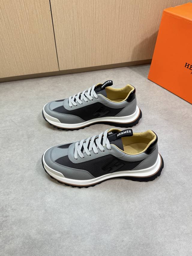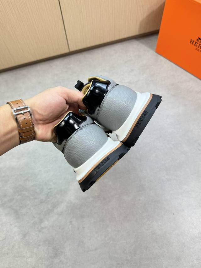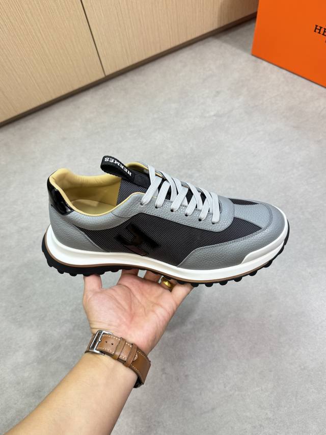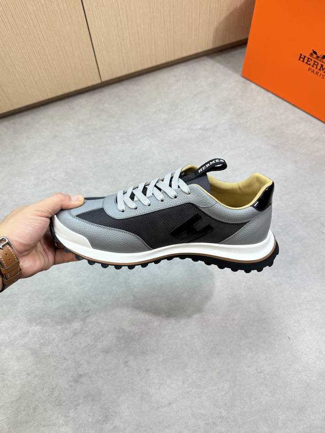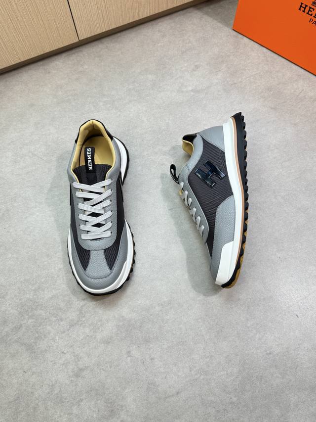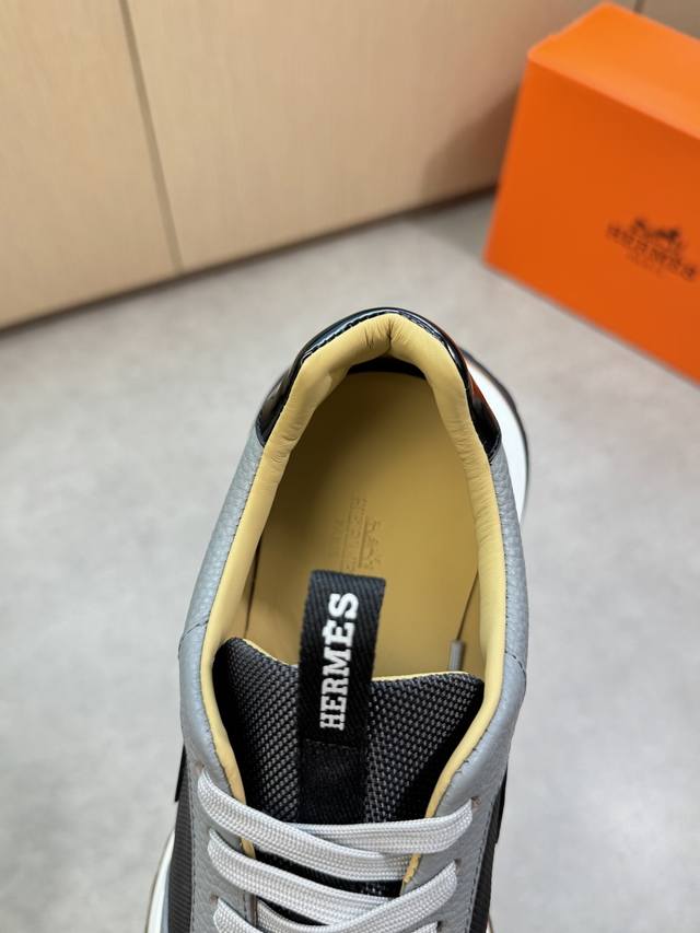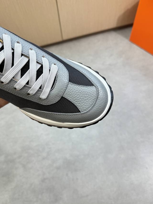 调工厂P价 男装男鞋 运动原单 Hermes 爱马仕 -高端品质 原单 休闲运动鞋 -鞋面:荔纹小牛皮、高丝光帆布、鞋身车缝品牌′H′图腾、鞋舌品牌Logo织带