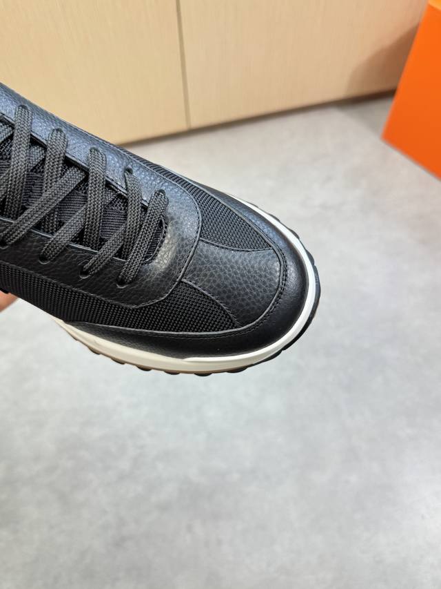 调工厂P价 男装男鞋 运动原单 Hermes 爱马仕 -高端品质 原单 休闲运动鞋 -鞋面:荔纹小牛皮、高丝光帆布、鞋身车缝品牌′H′图腾、鞋舌品牌Logo织带