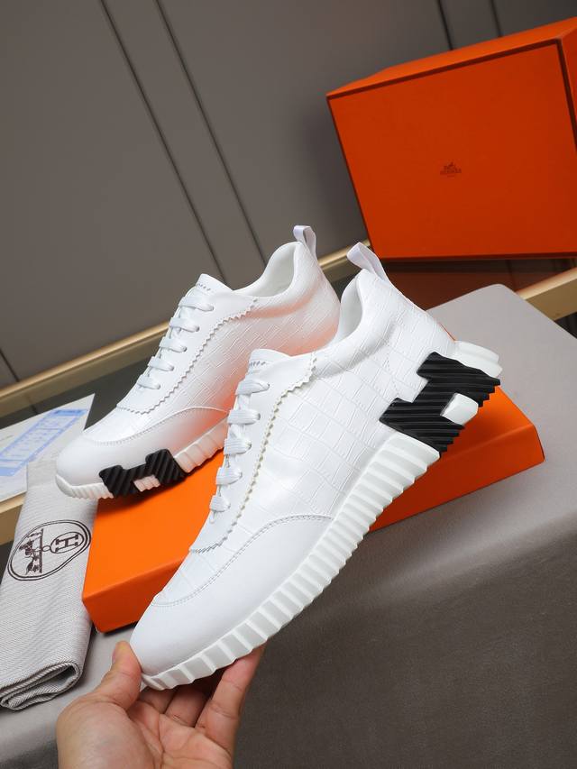 调工厂p价p调工厂p价 Herme* 爱马仕Bouncing运动鞋,男士休闲运动鞋,鞋面石头纹牛皮水洗羊里!质感十足,轻盈鞋底装饰撞色图案,打造百搭时尚风格。 Ddd 码数:38-44 45定做 DDD