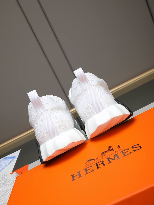 工厂P价 Hermes 爱马仕 Leader运动鞋! 多色拼接高科技斜纹、小牛皮和麂皮山羊皮运动鞋。轻盈几何鞋底,打造时尚都市造型。...