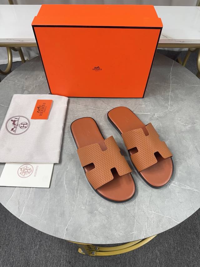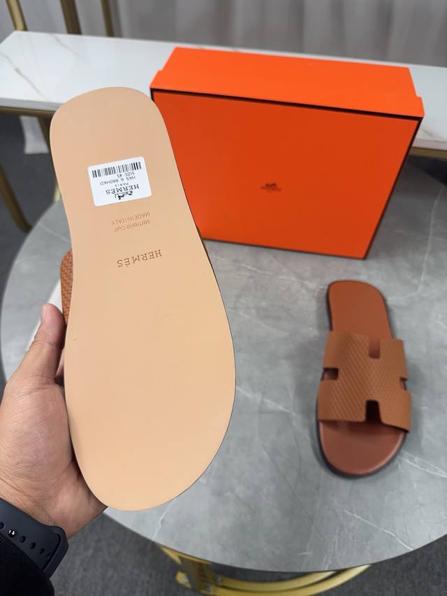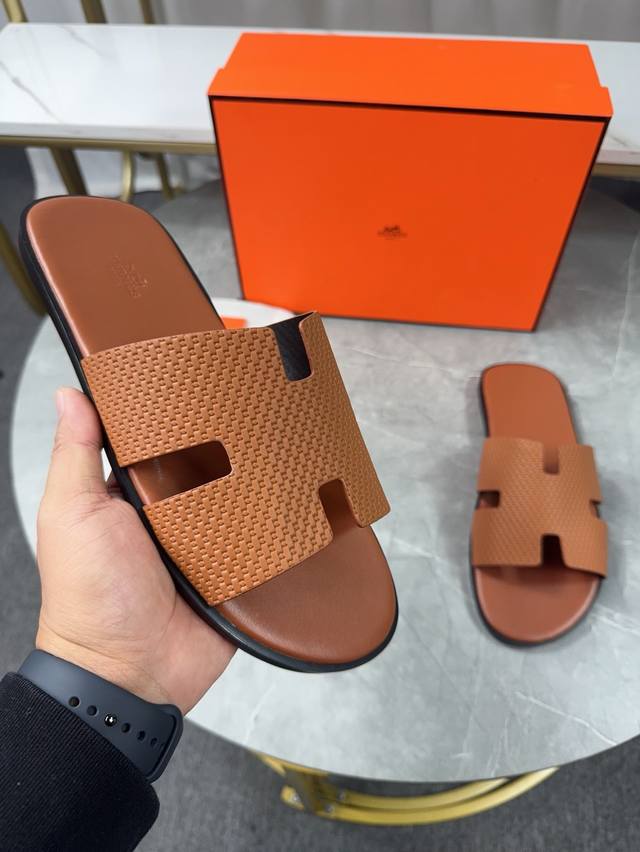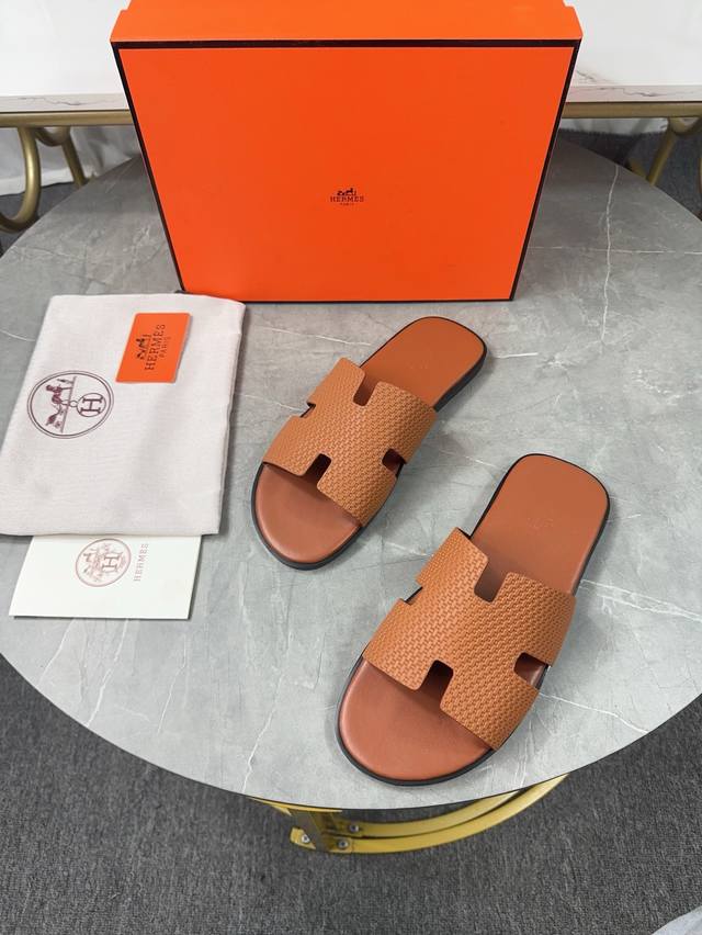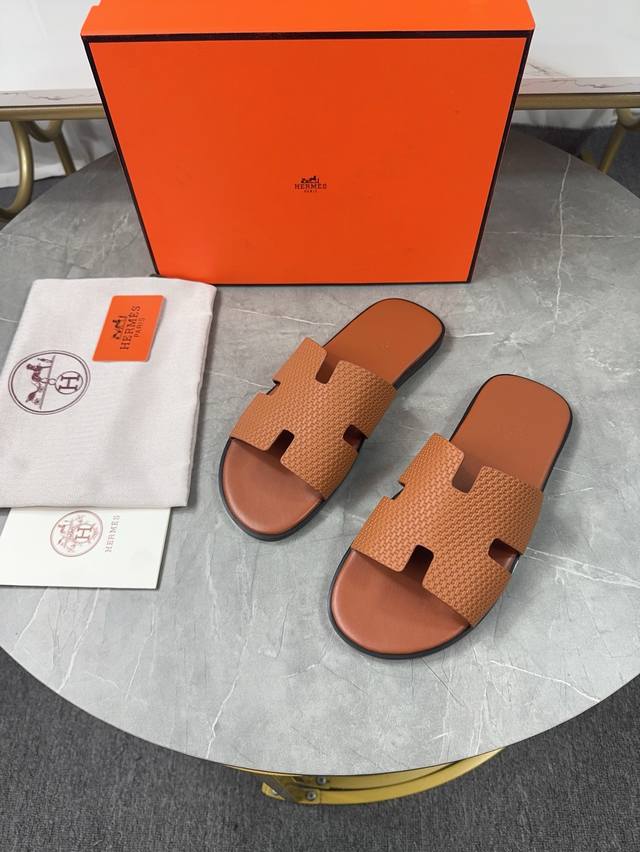 / 跑量价 ,爱马仕HermèS 男款拖鞋经典之最,纯手工精心制作的,垫脚采用高周波压制 里料 : 进口牛里,舒适透气, 上脚更舒适 对版H型 码数:39-44橡胶