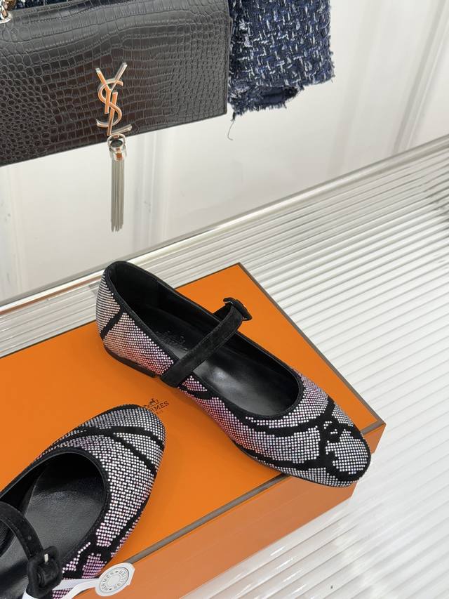 顶版 配原版飞机盒 DDD HermèS 爱马仕26Wf新品水钻玛丽珍鞋 DDD 承袭爱马仕百年制鞋匠心 DDD 圆头玛丽珍鞋以经典廓形锚定优雅底色 DDD 水钻缀饰焕活精致张力 柔中带奢 DDD 步履间尽展低调矜贵 适配多场景穿搭 DDD 藏起不张扬的高阶品味。 DDD 鞋身饰以细碎水钻 疏密有致排布 DDD 光线折射下闪映莹润柔光 DDD 搭配针织裙显温柔雅致 DDD 配直筒裤露干练格调 DDD 搭连衣裙衬灵动气质 DDD 轻松适配通勤、约会、日常出街 DDD 以经典廓形扛住时光考验 DDD 以水钻细