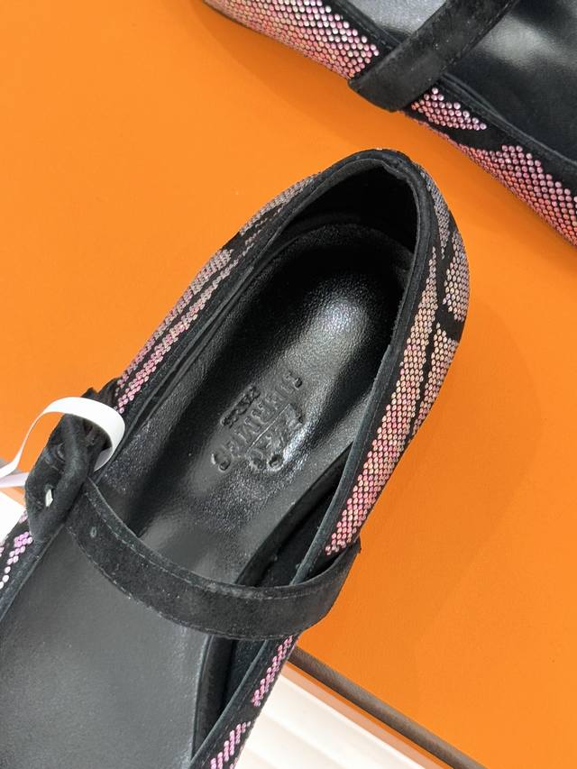 顶版 配原版飞机盒 HermèS 爱马仕26Wf新品水钻玛丽珍鞋 承袭爱马仕百年制鞋匠心 圆头玛丽珍鞋以经典廓形锚定优雅底色 水钻缀饰焕活精致张力 柔中带奢 步