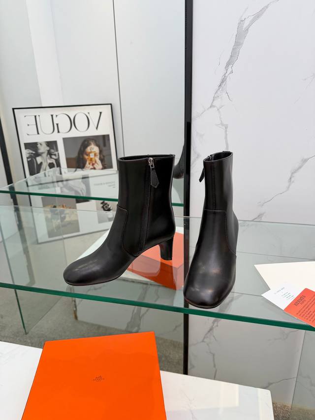 / 顶级版本 代购级 爱马仕 Hermes 2025秋冬新款 Lisa 粗跟侧拉链及裸女短靴 H家字母Logo高跟圆头马丁骑士靴 材质:鞋面进口小牛皮+水染羊皮内里