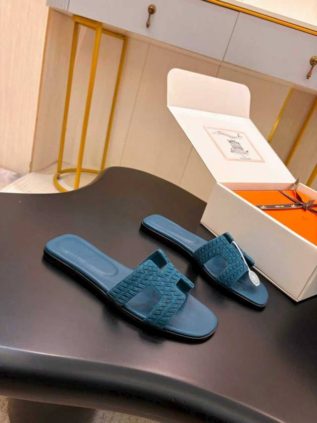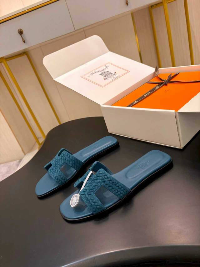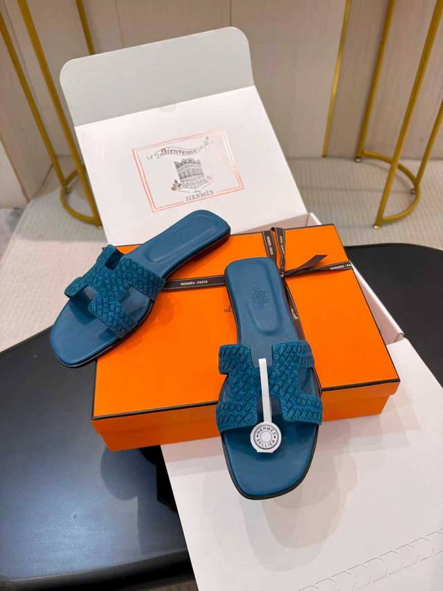 飞机盒另加10 * 爱玛仕 25 DDD 2025春夏新品 顶级版本经典H型Oran粗跟拖鞋系列 DDD 鞋面:原版特定牛皮 DDD 内里:进口混种羊皮 DDD 大底:原版意大利真皮大底 DDD 跟高:平底 5Cm DDD 鞋码: 35-39 40.41.42.定做不退换 DDD