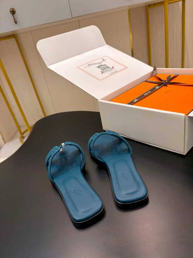 HermèS 包装升级,版型做工材料升级。 Hermes纯手工鞋 产品爱马仕拖鞋 早春新款原版一样, 师傅级纯手工打造...