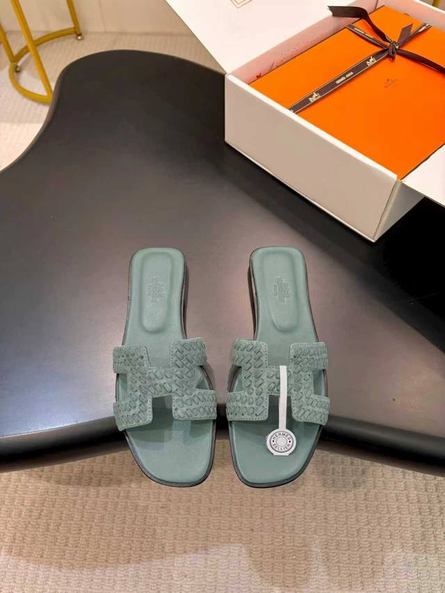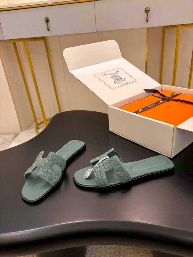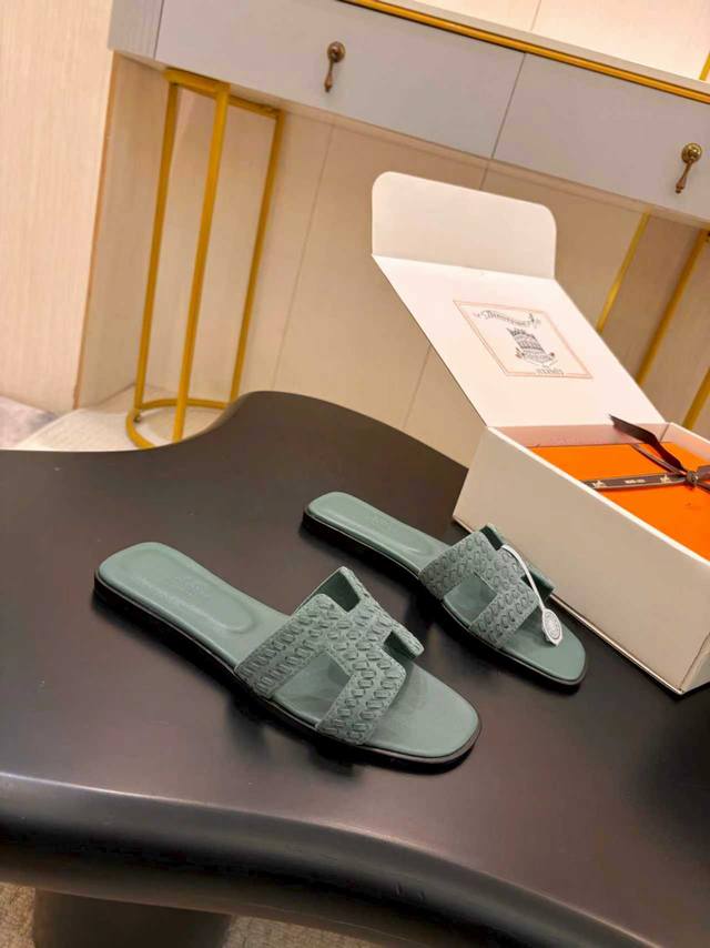 飞机盒另加10 * 爱玛仕 25 DDD 2025春夏新品 顶级版本经典H型Oran粗跟拖鞋系列 DDD 鞋面:原版特定牛皮 DDD 内里:进口混种羊皮 DDD 大底:原版意大利真皮大底 DDD 跟高:平底 5Cm DDD 鞋码: 35-39 40.41.42.定做不退换 DDD