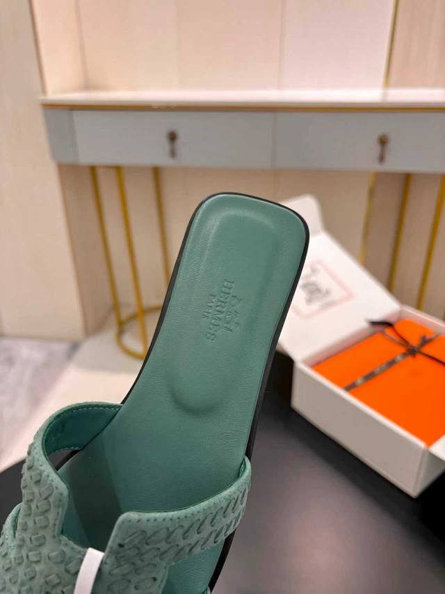 / 飞机盒另加10 * 爱玛仕 25 2025春夏新品 顶级版本经典H型Oran粗跟拖鞋系列 鞋面:原版特定牛皮 内里:进口混种羊皮 大底:原版意大利真皮大底 跟高