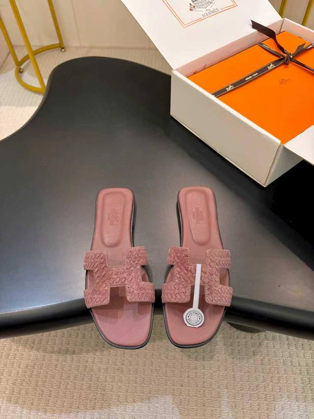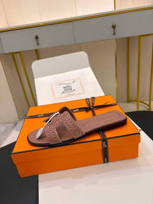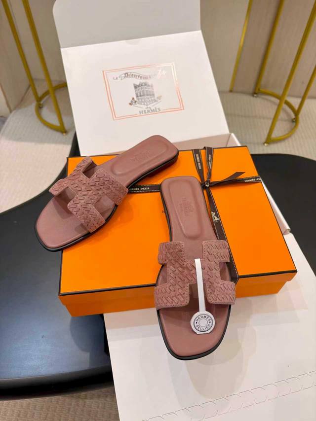 飞机盒另加10 * 爱玛仕 25 DDD 2025春夏新品 顶级版本经典H型Oran粗跟拖鞋系列 DDD 鞋面:原版特定牛皮 DDD 内里:进口混种羊皮 DDD 大底:原版意大利真皮大底 DDD 跟高:平底 5Cm DDD 鞋码: 35-39 40.41.42.定做不退换 DDD